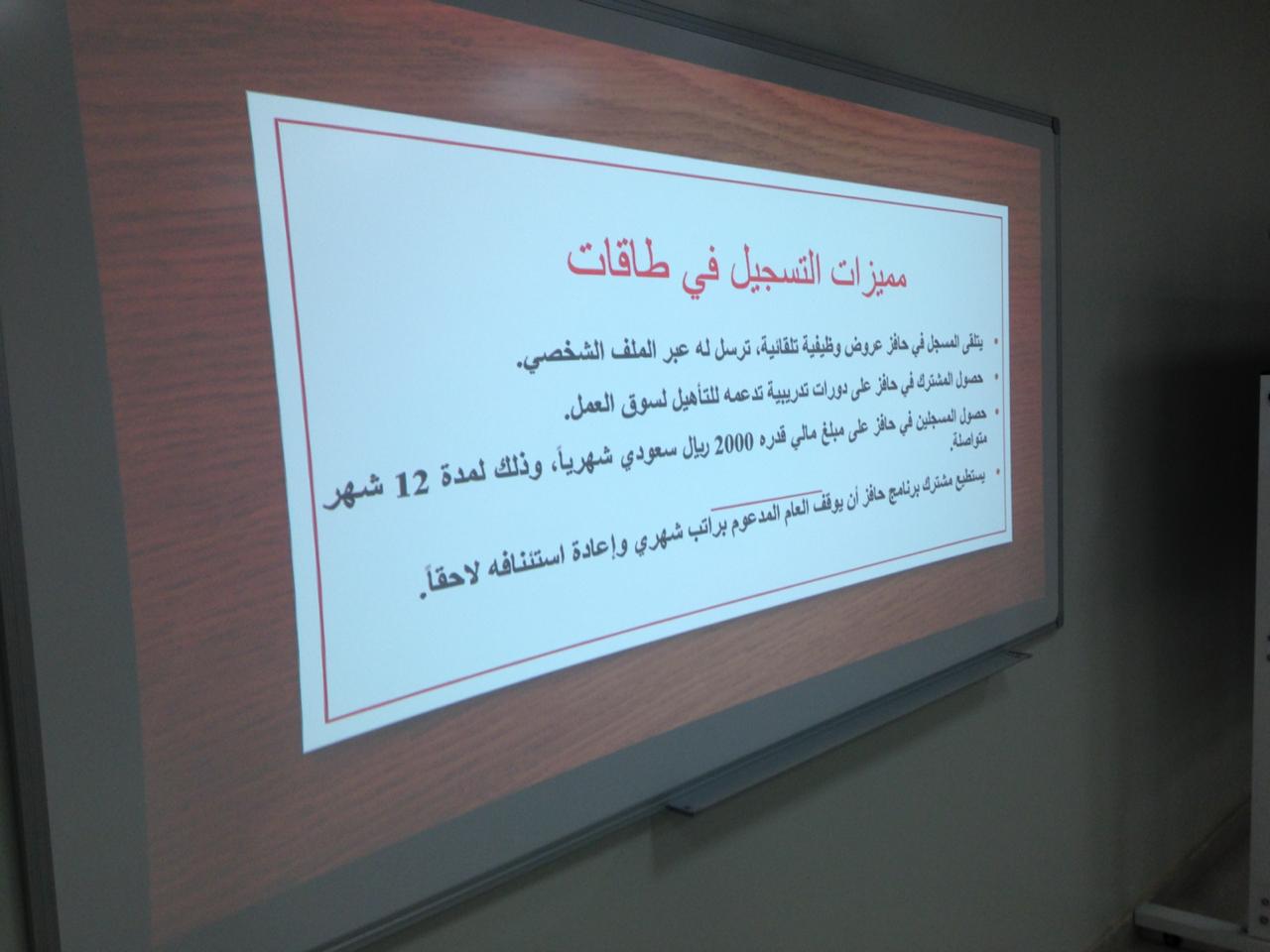 في ضوء سعى كلية التربية بوادي الدواسر لتحقيق رسالتها السامية وهي " تخريج كوادر تربوية تلتحق بسوق العمل " . أقامت وحدة الخريجين يوم الثلاثاء الموافق 1441/4/13هـ ، دورة تدريبية بعنوان " طاقات"،. وقد هدفت الورشة التدريبية إلى تعريف طلاب ما قبل التخرج والخريجين بفكرة موقع طاقات من حيث المفهوم ومميزات التسجيل بالموقع باعتباره أحد مصادر الحصول علي الفرص الوظيفية المتنوعة .