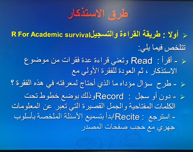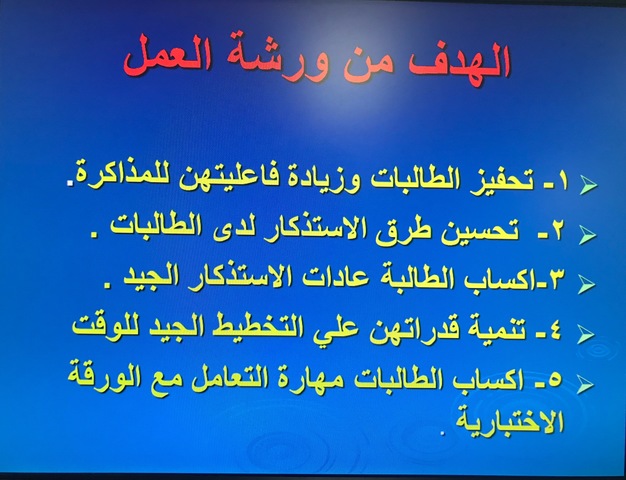 - تحسين طرق الاستذكار لدى الطالبات من خلال استعراض عدد من النقاط المهمة التي يجب اتباعها .