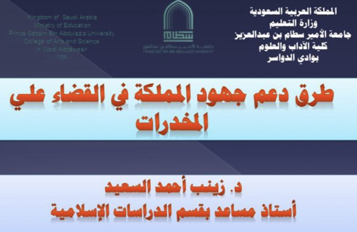 قدمت وحدة التطوير والجودة ممثلة في وحدة التطوير والتميز العلمي بكلية الآداب والعلوم بالتعاون مع قسم الدراسات الإسلامية دورة تدريبية بعنوان( طرق دعم جهود المملكة في مواجهة المخدرات) وذلك يوم الأحد 27/10/1444هـ ، حيث قدمت الدورة : د / زينب أحمد السعيد الأستاذ المساعد بقسم الدراسات الإسلامية وكان من أهم أهدافها: