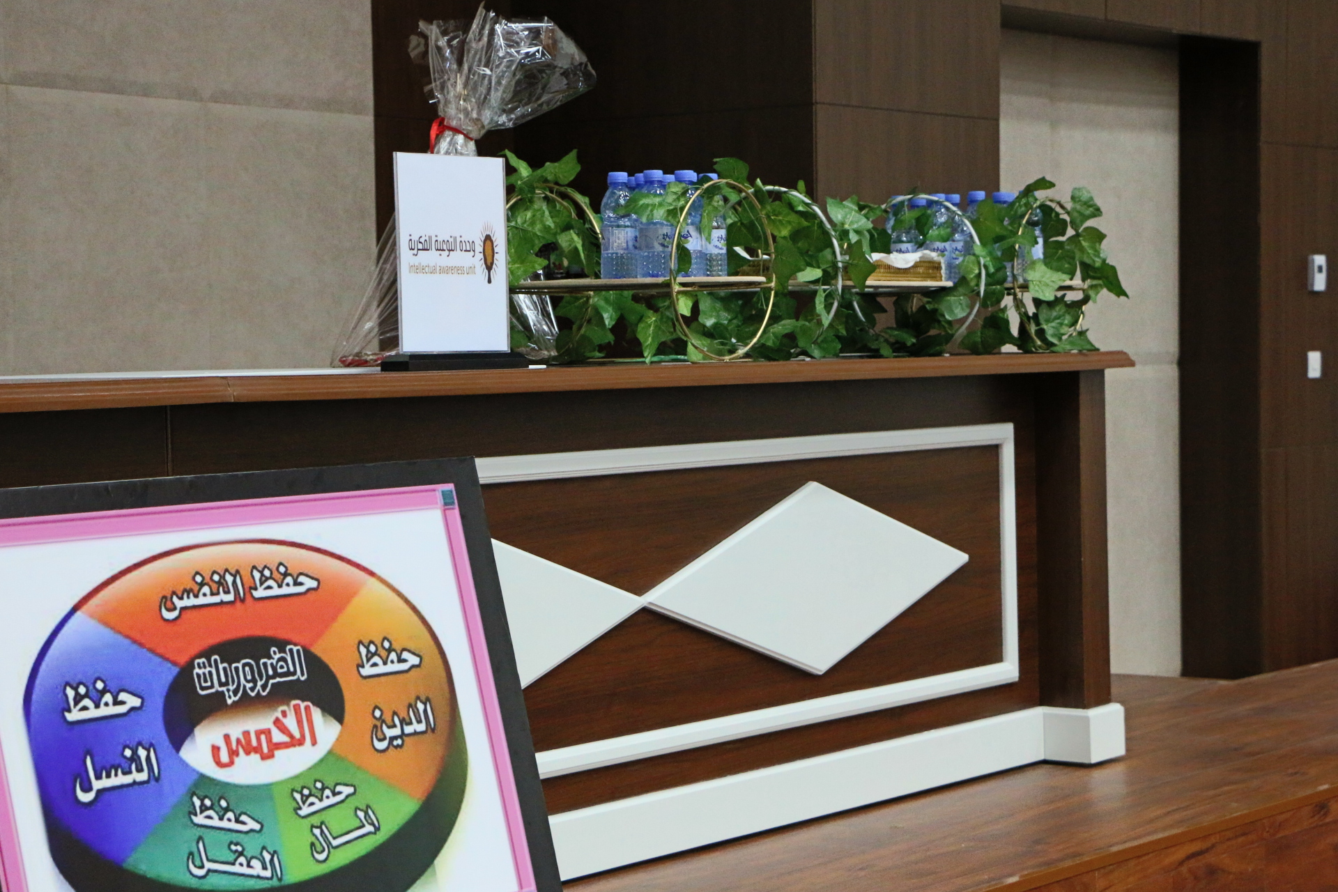 في يوم الثلاثاء الموافق 28 صفر 1440هـ نظمت وحدة التوعية الفكرية بكلية العلوم والدراسات الإنسانية في السليل دورة تدريبية ضمن مشروع جامعة واعية الثالث بعنوان"تطبيقات لحفظ الضروريات الخمس" قدمتها الدكتورة صفية القحطاني في تمام الساعة العاشرة صباحًا في مسرح الكلية بحضور مجموعة من أعضاء هيئة التدريس والاداريات وشهدت حضور من الطالبات وقامت منسقة التوعية الفكرية في الكلية الأستاذة نورة فارس العمور بتخصيص ركن تعريفي للوحدة به منشورات عن فكرة المشروع ومكوناته ومحاورة بالإضافة لركن ضيافة للحضور وحيث تناولت الدكتور صفية المحاور التالية للدورة وهي التعريف بمقاصد الشريعة والتعريف بالضرورات الخمس والأستدلال على إهتمام الإسلام بما يحفظ له الحياة الكريمة في الدنيا والإخرة واختتمت الدوره بأسئلة من الحضور تم مناقشتها مع مقدمة الدورة.