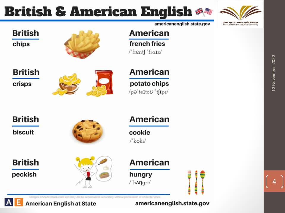 - تميز الطالبة بين اللهجتين الرئيسيتين للغة الإنجليزية وهما الإنجليزية البريطانية والإنجليزية الأمريكية من حيث النطق والكتابة والقواعد والمفردات وغيرها من الجوانب.