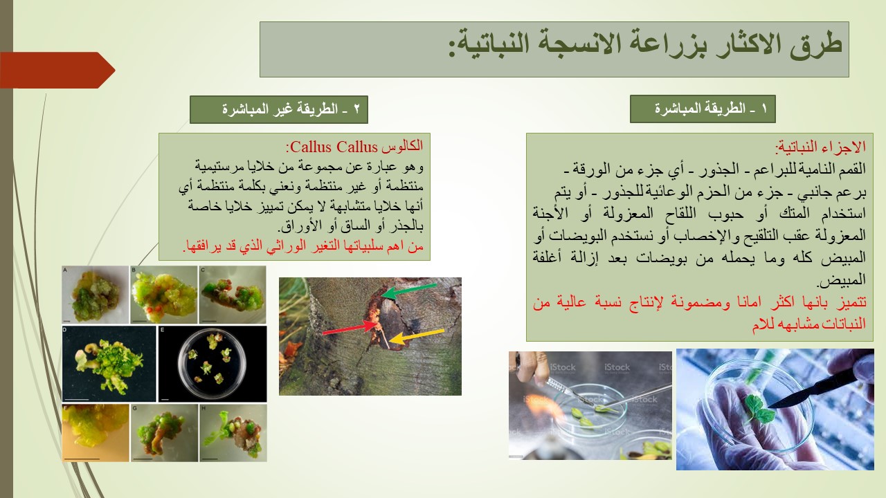 وقد هدفت الدورة إلى التعرف على تقنية زراعة الأنسجة النباتية بنوعيها المباشرة و الغير مباشرة و أهميتها في إكثار الأنواع النباتية.
