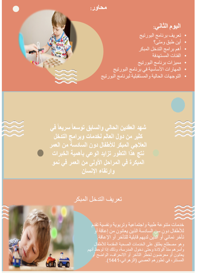 6. دليل التدخل المبكر.عرضت الأستاذة محاور اللقاء لليوم الثاني وهي: