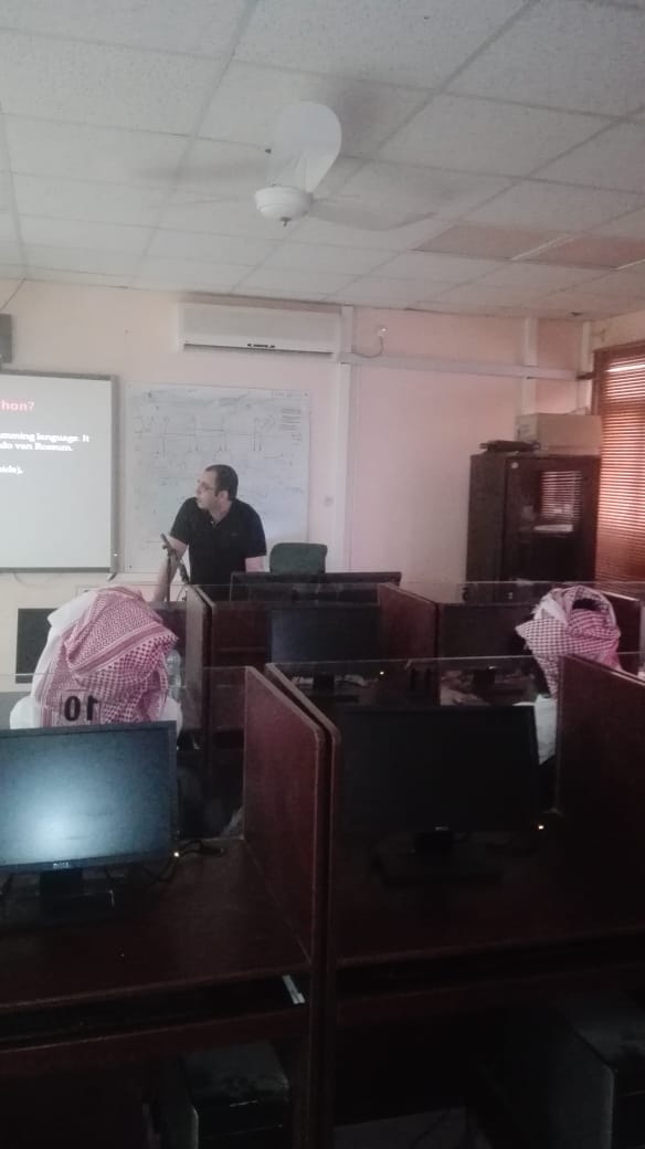 يقدم المحاضر مصطفى محمد القضاه دورة تدريبية في البرمجة باستخدام لغة البرمجة "Python " لمد ه ثلاث أسابيع اعتبارا من تاريخ 1440/2/22 هـ