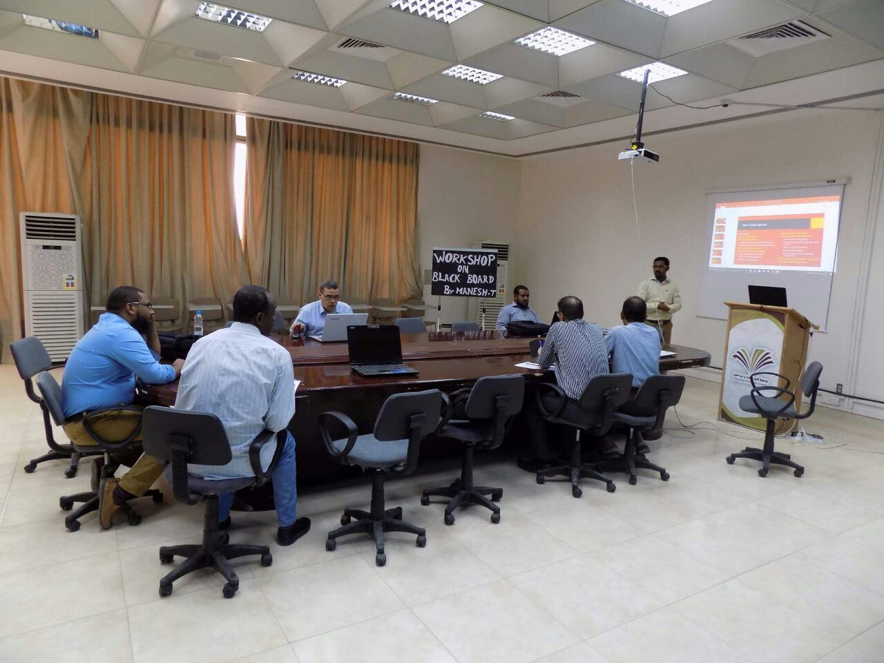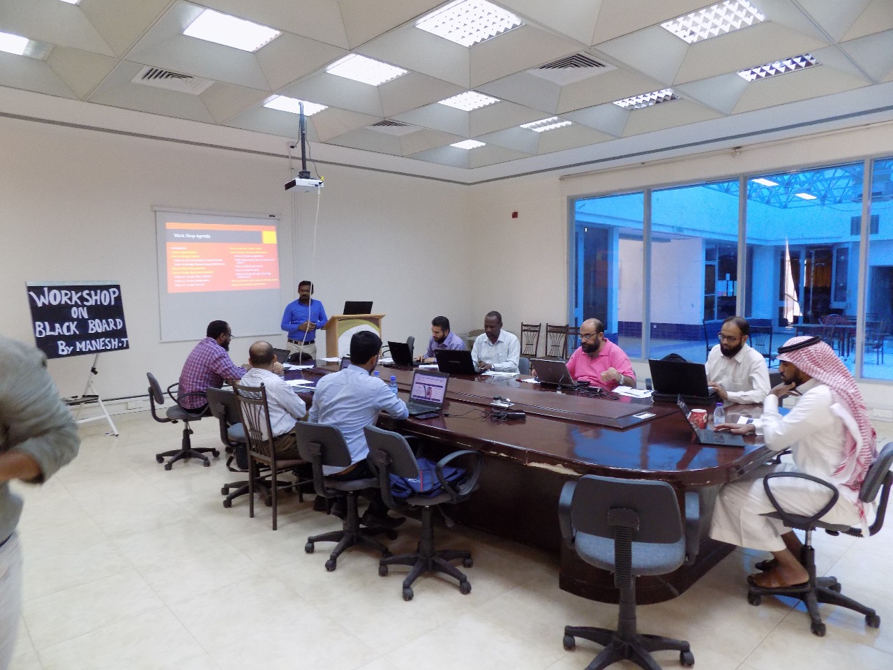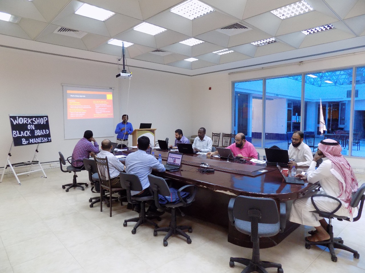ويرتبط البلاك بورد بحزمه من الخدمات منها ( نظام الفصول الافتراضية، نظام الاختبارات، نظام الرسائل النصية القصيرة) امتدت الدورة لمدة : ( ٣ ) أسابيع لتشمل جميع أعضاء هيئة التدريس بالكلية .