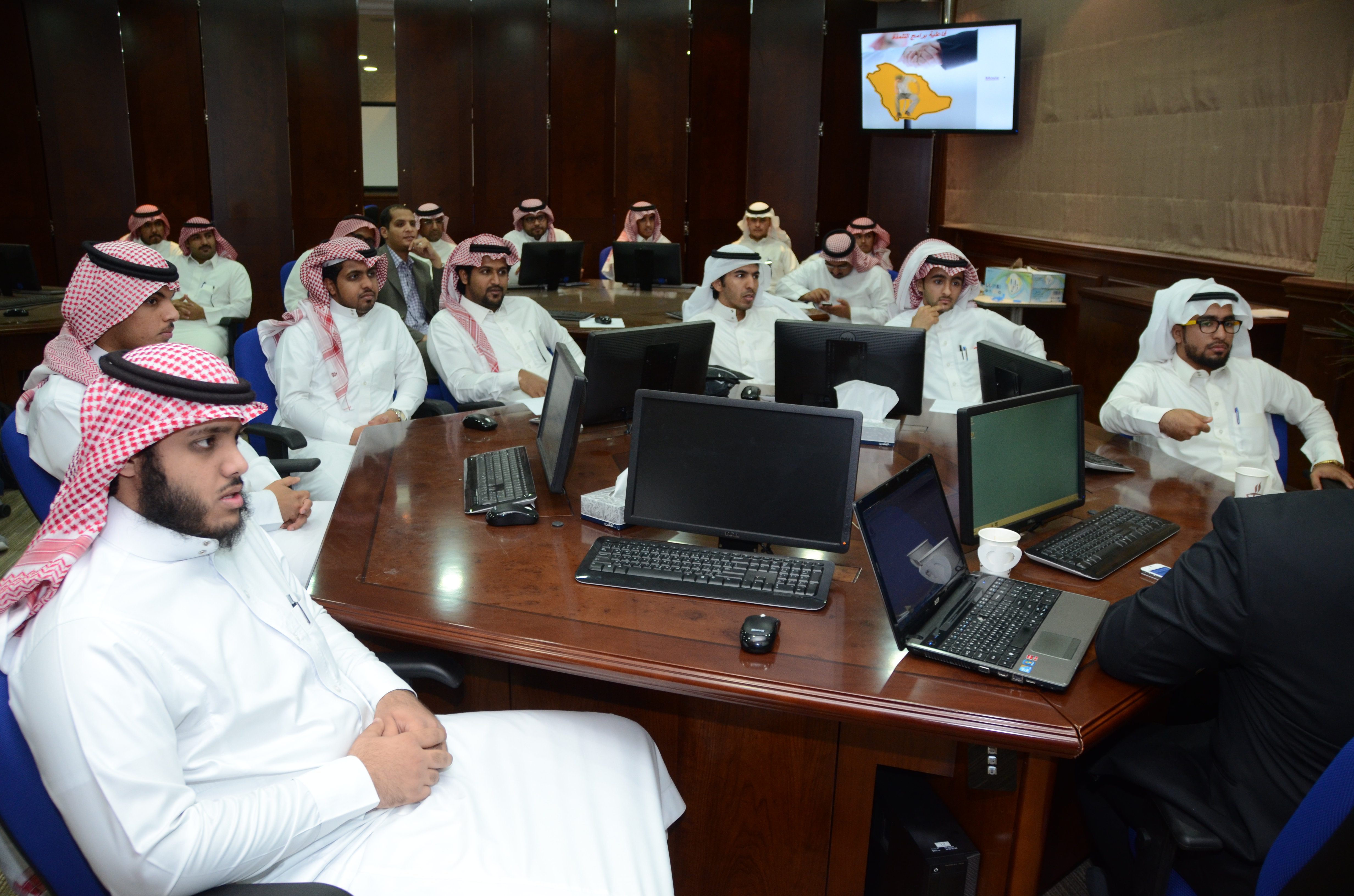 يذكر أن عمادة تقنية المعلومات قدمت عرضاً مفصلاً لكيفية التعامل مع البلاك بورد والذي سينفذ برنامج التلمذة عن طريق هذه التقنية.