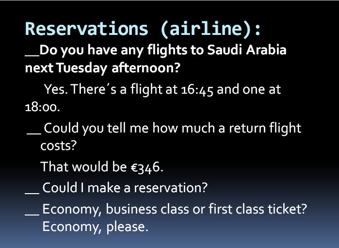 * نماذج لحوارات حقيقية بين السياح وموظفي المطاعم ,المناطق السياحية , الفنادق او المطارات