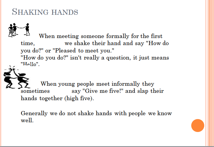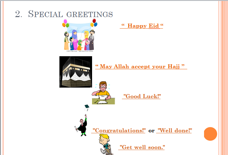 7. تعريف المتدربين بعبارات التحية اليومية وفى المناسبات الخاصة