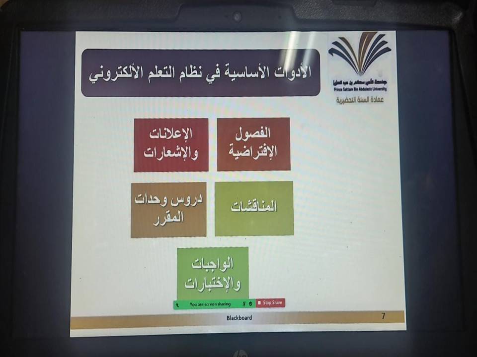 تحت رعاية وكيلة عمادة السنة التحضيرية د.أمل بنت صالح الشمراني وضمن برامج تهيئة الطالبات الجدد أقامت عماده السنة التحضيرية دورة تدريبية "عن بعد " عبر برنامج الزوم يوم الاثنين الموافق 1444/2/23هـ،بعنوان"نظام التعلم الإلكتروني " من تقديم الاستاذه / عزة النيل عبدالله حيث تناولت الورشة عدد من المحاور أهمها : التعرف على بوابة التعلم الإلكتروني والخدمات التي توفرها البوابه من محتوى المقررات والاطلاع عليه وكيفية التعامل مع الواجبات ورفع ملفات الواجبات والبحوث وأيضا تناولت الدورة كيفية الدخول على الفصول الافتراضية والتعامل معها وإجراء الإختبارات والإطلاع على التقديرات ، ولضمان جودة التدريب والتأكد من الاستفادة القصوى للطالبات تم استقبال الاستفسارات والرد عليها وكان هناك تفاعل من الحضور .