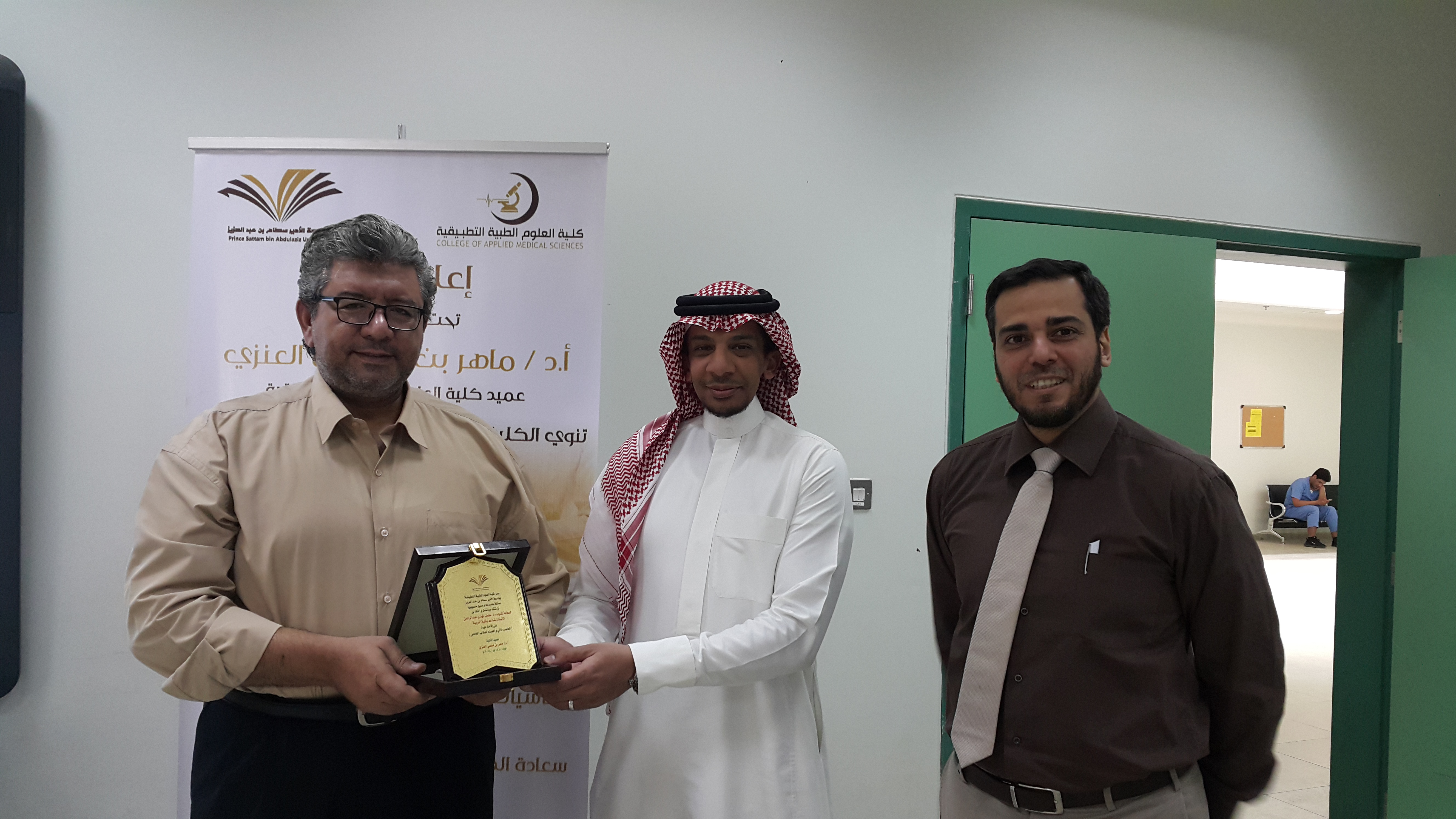 وفي نهاية اللقاء تم تسليم الدكتور محمد المهدي عبدالرحمن درع تكريمي من الكلية.