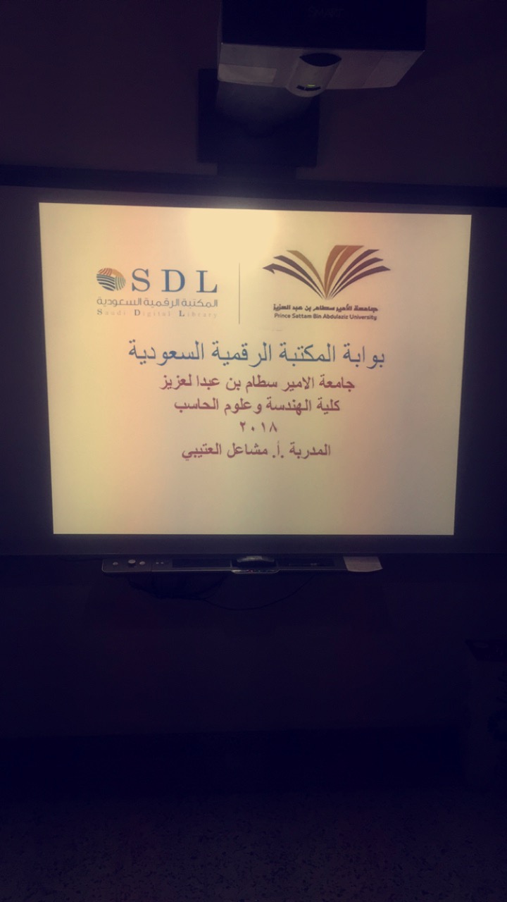 أقامت عمادة شؤون المكتبات بالتعاون مع وحدة النشاط الطلابي للكلية دورة تدريبية عن بوابة المكتبة الرقمية و كيفية الاستفادة منها قدمتها وألقتها الاستاذة مشاعل العتيبي في كلية هندسة و علوم الحاسب بحضور عدد من الطالبات و موظفات الكلية حيث تطرقت الى كيفية تسجيل (الطالب – الموظف- عضو هيئة التدريس ) في موقع المكتبة الرقمية السعودية و كيفية البحث واستخدام قواعد البيانات فيها وذلك بمعمل LB(2-4) يوم الثلاثاء الموافق 21/2/1440هـ في تمام الساعة الثانية عشر ظهرًا وحتى 1.00 ظهرًا.