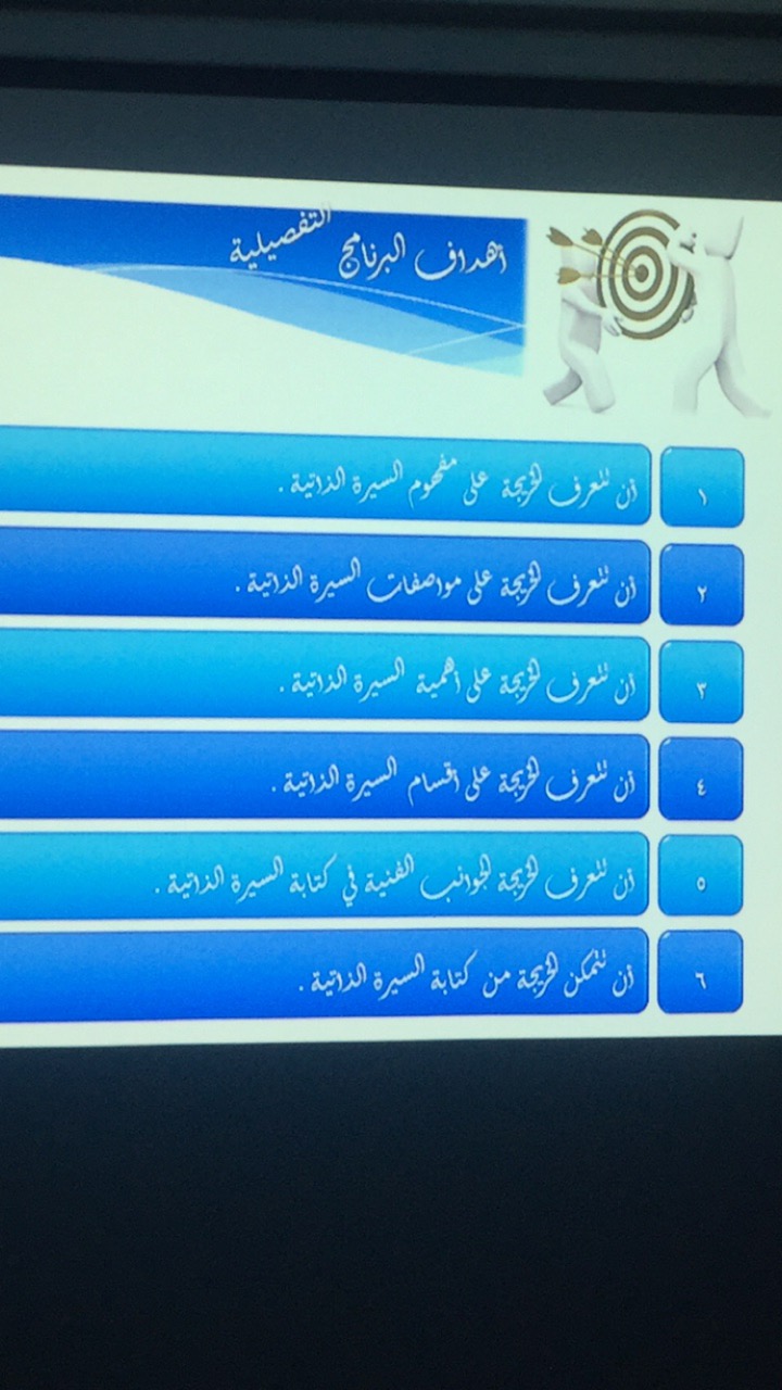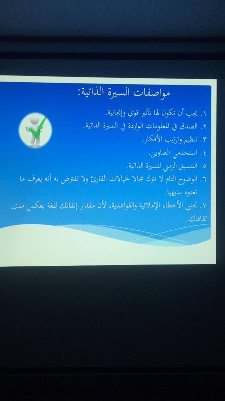أقامت وحدة الخريجات في الكلية دورة تدريبية عن فن كتابة السيرة الذاتية قدمتها وألقتها الأستاذة نوف بالعبيد في كلية هندسة و علوم الحاسب حيث تطرقت إلى تعريف السيرة الذاتية و مواصفاتها و أهميتها و أقسامها وذلك بمسرح الكلية يوم الأثنين الموافق 27/2/1440هـ في تمام الساعة الثانية عشر ظهرًا وحتى 1.00 ظهرًا.