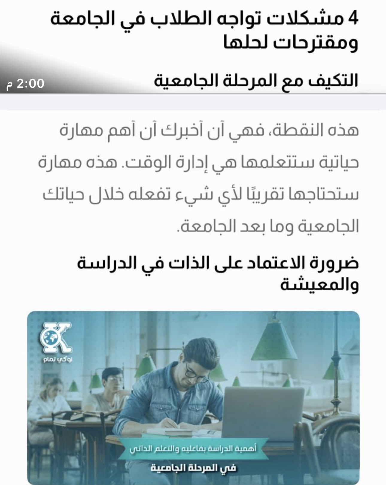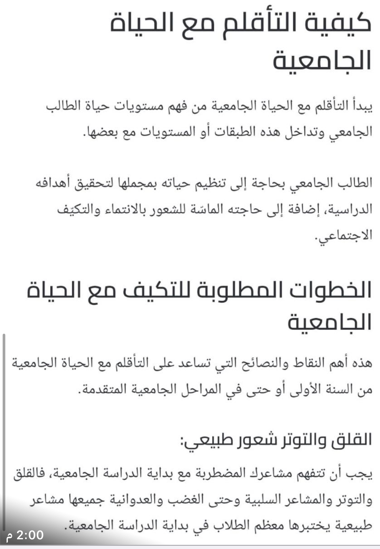 التعريف بالمجتمع الأكاديمي , وفوائد الأنشطة اللاصفية ,و التعلم الذاتي أثناء فترة الجامعة