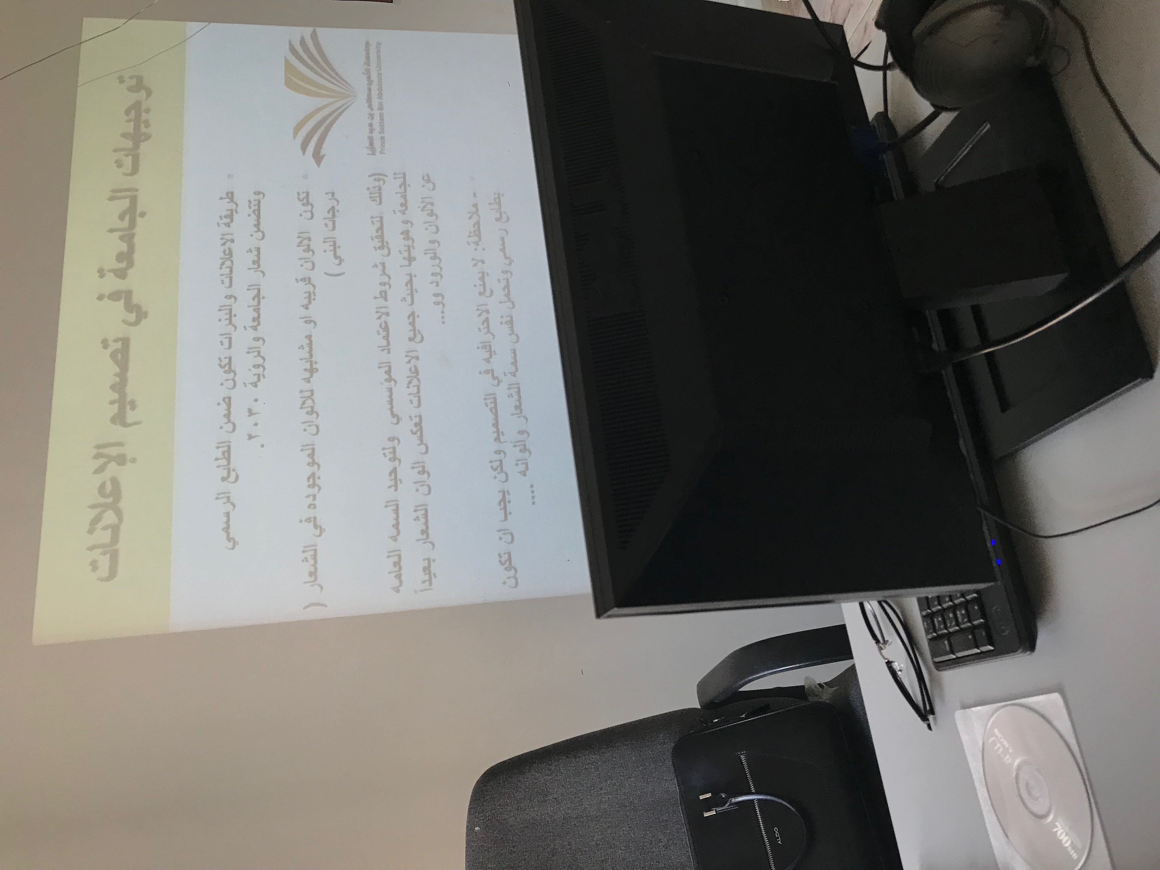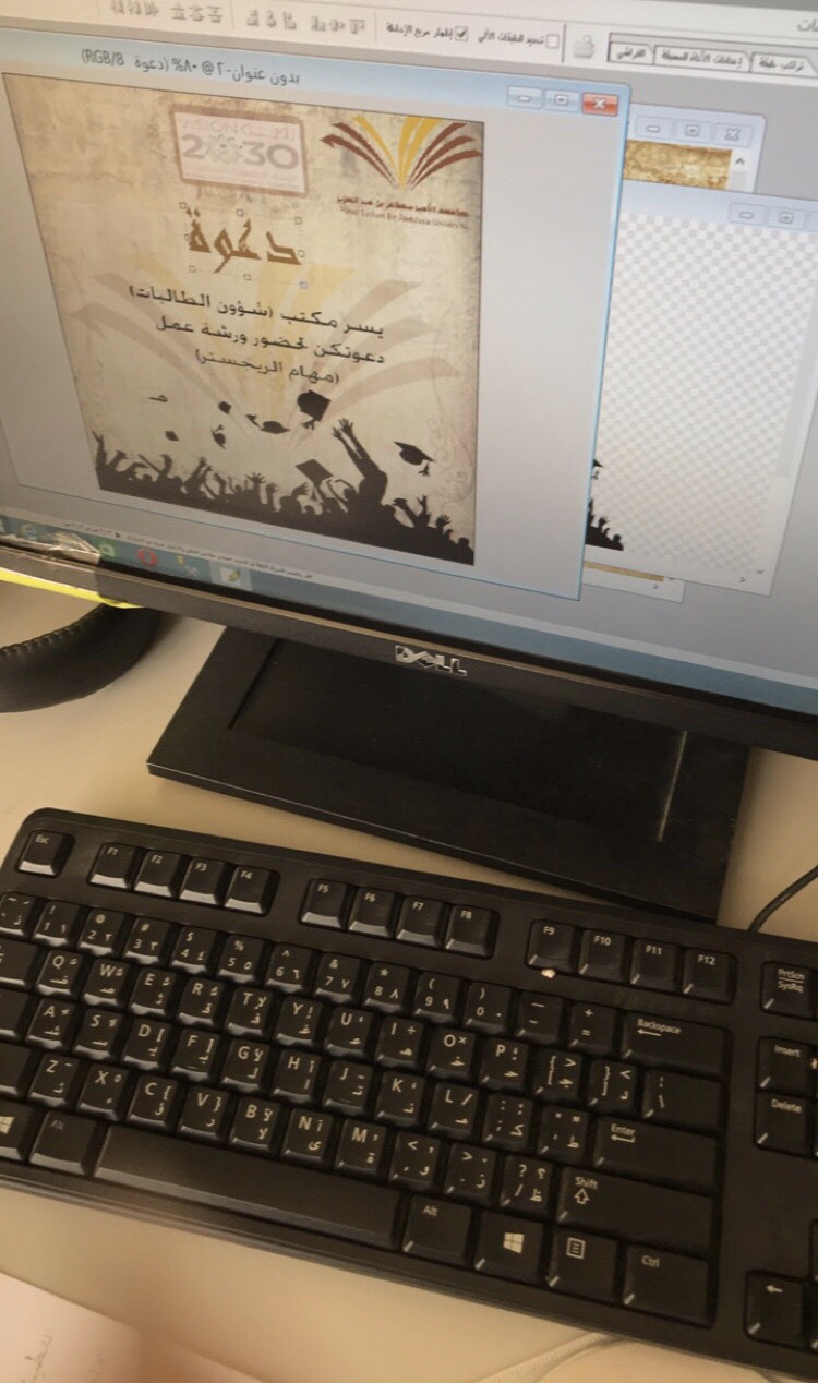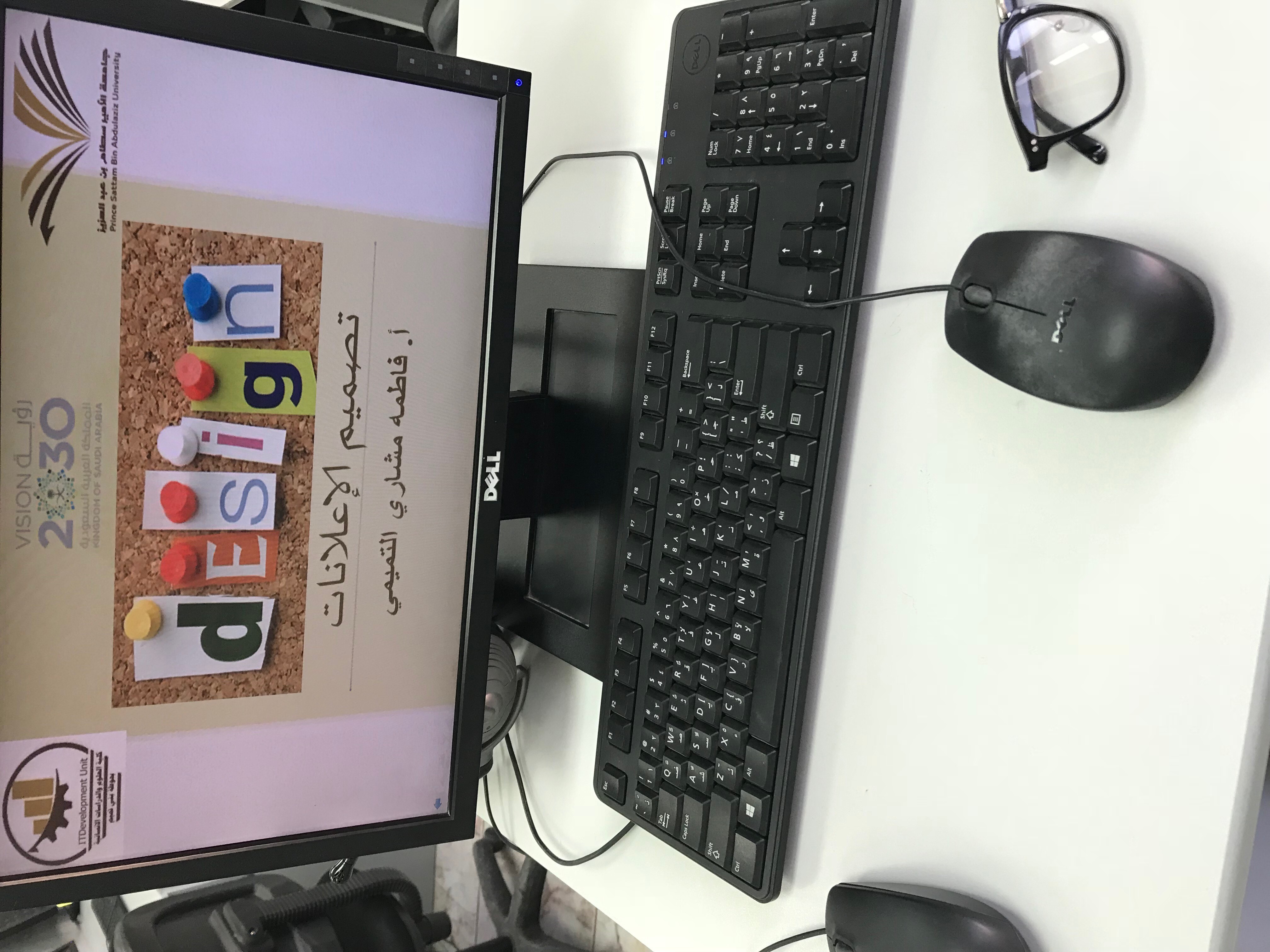 تحت رعاية عميدة كلية العلوم والدراسات الإنسانية بحوطة بني تميم قدمت لجنة التطوير الإداري بالتعاون مع وحدة تقنية المعلومات في كلية العلوم والدراسات الإنسانية بحوطة بني تميم ورشة عمل بعنوان (تصميم الإعلانات ) في يوم الخميس الموافق 29/1/1439هـ من الساعة 9 حتى 12 ظهرًا قدمتها الأستاذة فاطمة مشاري التميمي من قسم نظم المعلومات , استهدفت الورشة الطاقم الإداري للكلية وكان عدد الحضور 11 أستاذة , تهدف الورشة إلى التعرف على أهم أساسيات تصميم الإعلانات بطريقة سهلة باستخدام الجوال ( برنامجPicsArt) وشرح مفصل باستخدام الحاسب ( Photoshopلبرنامج ) , تعرفن المتدربات على أهم النصائح لتصميم الإعلانات في اختيار التنسيقات والمقاسات بما يتوافق مع توجيهات ورسالة الجامعة , بعد ذلك بدأت المتدربات بالتطبيق المباشر على الكمبيوتر ؛ حيث تعرفن على أهم أساسيات التصميم في فتح عمل جديد واختيار الخلفيات وإضافة الصور والأشكال ثم كتابة النصوص وأخيرًا حفظ العمل وتصديره كصوره .