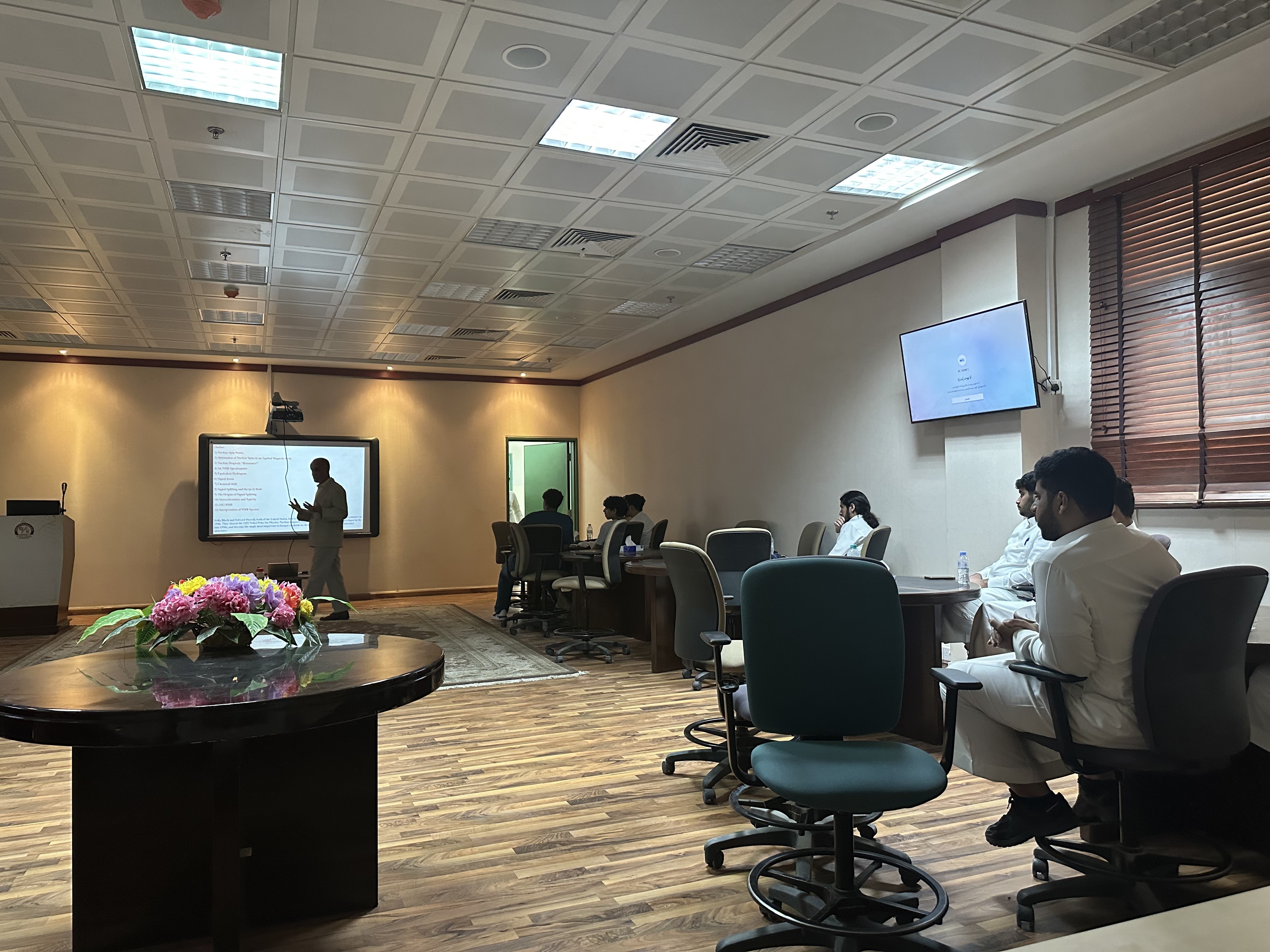 امتدادًا للدورات التدريبية التي يقدمها قسم الكيمياء في كلية العلوم والدراسات الإنسانية بالخرج وحرصًا منه على الإسهام في تطوير وخدمة المجتمع من خلال كوادر مؤهلة في مختلف المجالات أقيمت دورة تدريبية تحت عنوان "توصيف المركبات الكيميائية باستخدام جهاز الرنين المغناطيسي" يوم الثلاثاء الموافق 19-09-2023 بقاعة التدريب في الكلية وقد كانت الدورة من تقديم الدكتور أحمد البشر أستاذ مشارك الكيمياء العضوية.