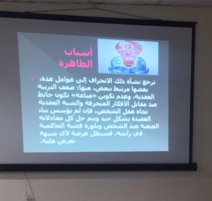 استكمالاً لتحضيرات الملتقى العلمي الثاني، أقامت لجنة الخدمة المجتمعية تحت مظلة كلية العلوم والدراسات الإنسانية بحوطة بني تميم وبالتعاون مع المكتب التعاوني للدعوة والإرشاد وتوعية الجاليات القسم النسائي بحوطة بني تميم دورة بعنوان (تعزيز دور المرأة والأسرة في مناهضة التطرف الفكري). حضرت الدورة سعادة عميدة الكلية الدكتورة حصة بنت سعود الهزاني وكانت من تقديم طالبات الكلية هياء الشريمي وآلاء الحماده وجواهر الشبانات وبإشراف عضوات هيئة التدريس بكلية الحوطة د. أميرة صالح ود. عديلة حسين، وذلك يومي الثلاثاء والأربعاء الموافق 13- 14 / 5 / 1439 هـ من الساعة ٦ إلى ٨ مساء في قاعة المكتب. تم خلال الدورة نقاش عدة محاور ومن أبرزها) مفهوم الأمن الفكري، وسائل الغزو الفكري، كيف نحمي أبنائنا من الغزو الفكري، دور المرأة في تعزيز الأمن الفكري، والآثار المترتبة على الأمن الفكري). وفي ختام الدورة شكرت الأستاذة فوزية الجمعة مديرة القسم النسائي القائمات على الدورة والمتدربات لجهودهم وتفاعلهم الملموس.