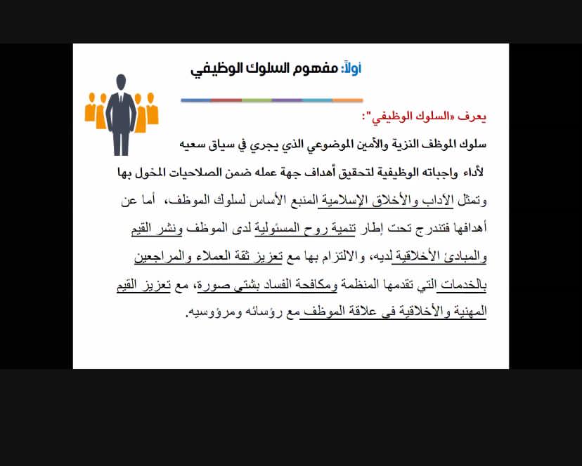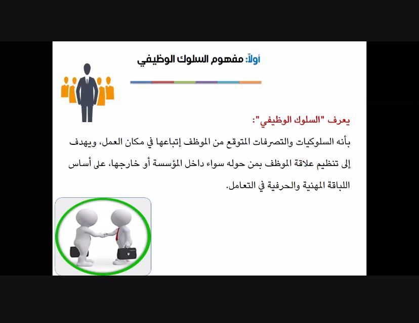 أقامت وحدة الخريجات بالكلية دورة بعنوان (السلوك الوظيفي) ، للدكتورة/ حصة اليحيى،وكان ذلك يوم الأربعاء بتاريخ 27/8/1442هـ،عبر برنامج الزوم. وتهدف الدورة إلى أن تتعرف المتدربة على تعريف السلوك الوظيفي وأهدافه واالسياسات العامة لقواعد السلوك الوظيفي, القيم الشخصية لقواعد السلوك ., أنواع العلاقات فى بيئة العمل.