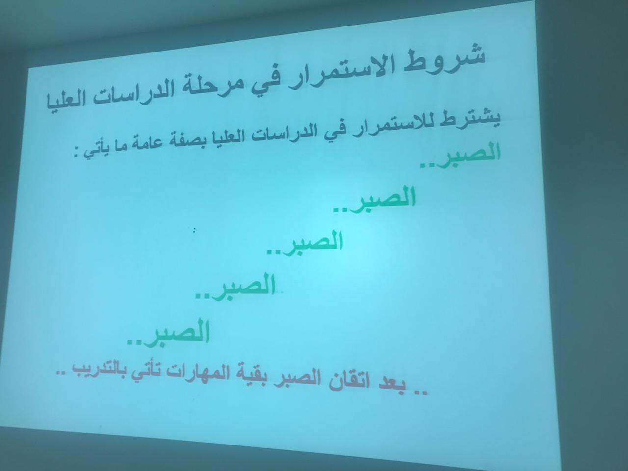 أقامت وحدة الخريجات دورة: (التأهيل للدراسات العليا) يوم الأحد بتاريخ5/6/1440هـ, في قاعة التدريب للدكتورة/ نوال الرشود، وتهدف الدورة إلى مساعدة الخريجة بعد إكمال مرحلة البكالوريوس في اتخاذ القرار لإكمال مرحلة الدراسات العليا، والتعريف ببرنامج سفير للابتعاث، وأوضحت المدربة أن للدراسات العليا أهمية كبيرة في حياة الإنسان، من جوانب شتى، ففي الجانب العلمي والتثقيفي مثلاً زيادة العلم والتعمق في التخصص أكثر وأكثر، فإن مرحلة البكالوريوس وإن كانت تؤهل متخصصين في مجالات مختلفة فإن مواصلة الدراسات العليا تزيد الطالب دقة وقوة في تخصصه، وهي من جانب آخر تؤهل الدارس إلى البحث والتحقيق لزيادة التعمق في تخصصه، كما أنه يكون بذلك مؤهلاً للمشاركات العلمية الجادة في مجال التأليف والمؤتمرات والندوات والمحاضرات، وغير ذلك مما يعود بالفائدة الكبيرة عليه وعلى غيره.