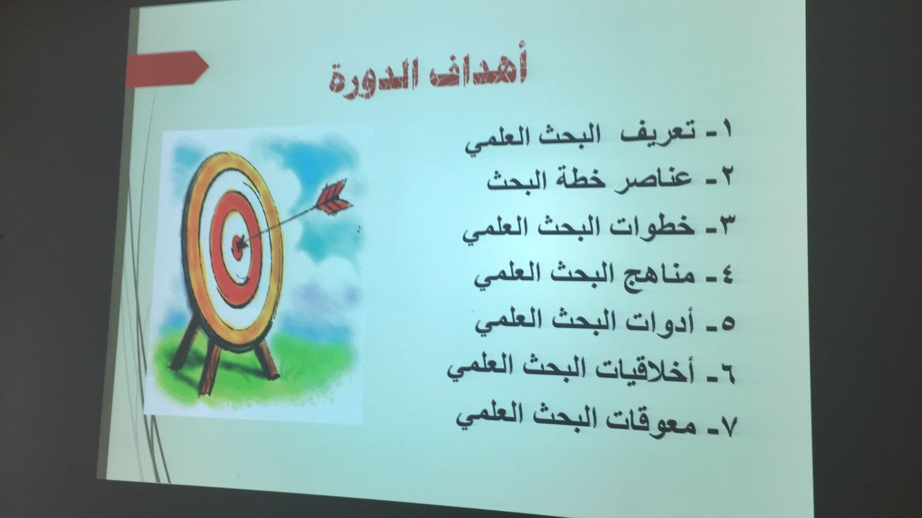 أقام قسم العلوم التربوية بالتعاون مع وحدة العمل الطلابي دورة تحت عنوان(أساليب الارتقاء بالبحث العلمي والجامعي) قدمتها د/ زينب عواد درويش الأستاذ مساعد بقسم العلوم التربوية يوم الثلاثاء 5-3-1440هـ. وتهدف الدورة للتعرف على مفهوم البحث العلمي و مهارات البحث العلمي ,وتوضيح خطوات كتابة البحث العلمي والتعرف على طريقة التوثيق حسب نظام APA,و التعرف على أخلاقيات البحث العلمي.
