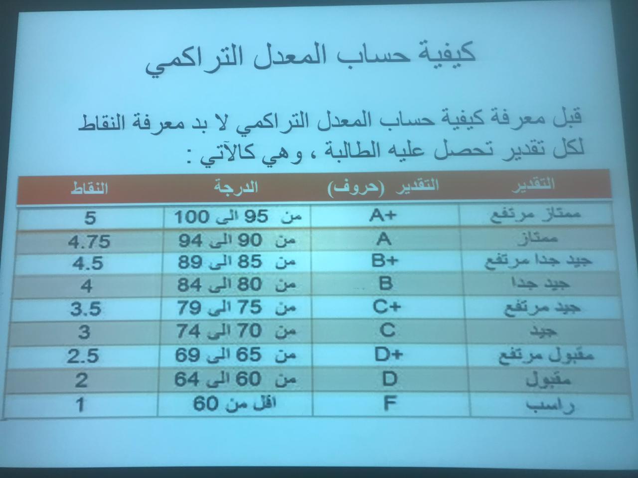 المعدل الجامعي هو بكل بساطة ناتج مجموع العلامات مقسوما على المواد، إلا إن المعدل الجامعي في بعض الأحيان يتم حسابه بطريقة أخرى و ذلك بسبب نظام الساعات المعتمد.وللتعريف بمعنى المعدل الجامعي وكيفية الحصول على معدل مشرف قدمت الدكتورة نوال الرشود الأستاذ المساعد بقسم العلوم التربوية بكلية التربية بالخرج دورة بعنوان(كيف تحصلين على معدل جامعي مشرف)يوم الأحد بتاريخ5-2-1440هـ،عرفت خلالها الطالبات بالمعدل التراكمي وكيفية حسابه والمقصود بانخفاض المعدل التراكمي وطرق رفع المعدل التراكمي .