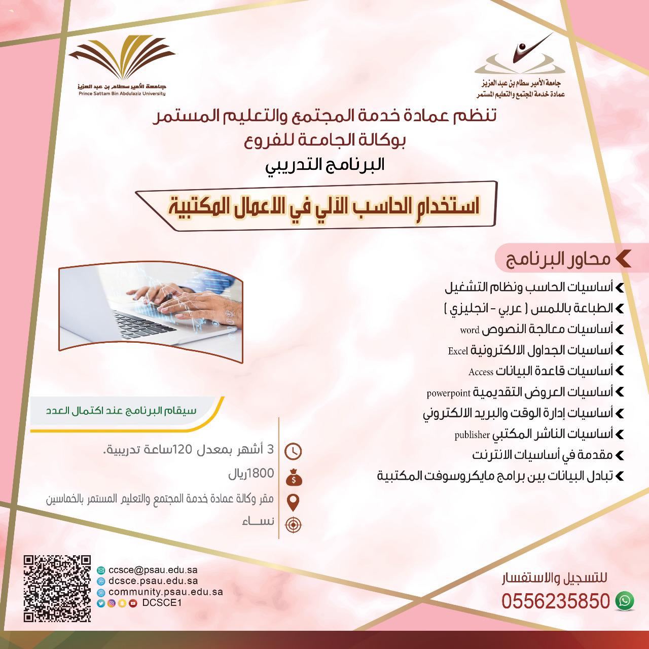 ١. استخدام الحاسب الآلي في الأعمال المكتبية ( نسائي – 3 شهور ) .