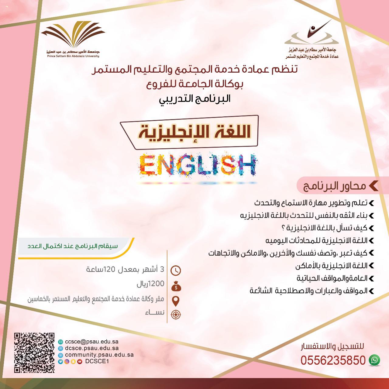 ٢ . دورة اللغة الإنجليزية ( نسائي – 3 شهور ) .