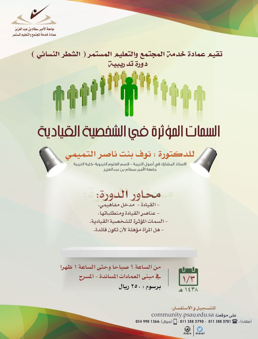 تنظم عمادة خدمة المجتمع والتعليم المستمر بجامعة الأمير سطام بن عبدالعزيز بالخرج (الشطر النسائي) دورتين مع بداية العام الدراسي.