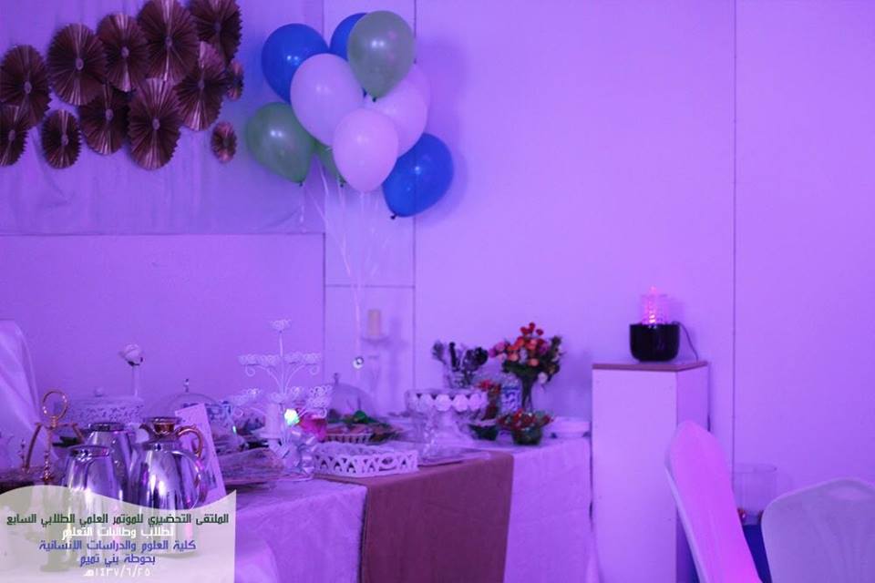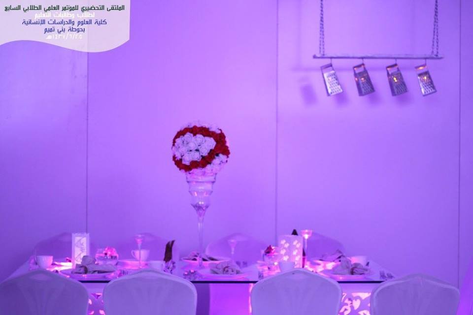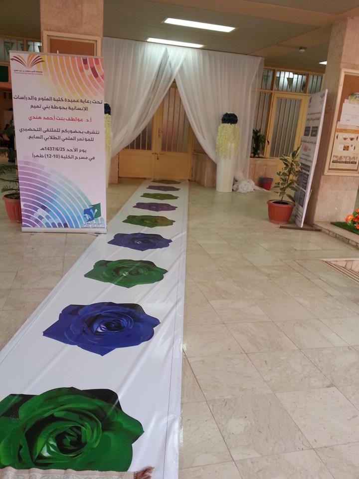 بإشراف عميدة الكلية ا.د. عواطف بنت أحمد هندي اقام شطر الطالبات بكلية العلوم والدراسات الانسانية بحوطة بني تميم الملتقي التحضيري للمؤتمر العلمي السابع ـ حيث تشرف الملتقي بحضور وكيلة الكلية د. حصة بنت سعود الهزاني و وكلية عمادة الشؤون الطلاب د. دلال المطرفي و د. إيمان ابو سليم عضو اللجنة العليا للمؤتمر وعدد من الضيوف الكرام من أعضاء هيئة التدريس والاداريات والمجلس الطلابي وطالبات الكلية ، بدأ الملتقي فعالياته بالنشيد الوطني أعقبة أنشاد من طالبات بالكلية ثم كلمة افتتاحية من المنسقة العامة للمؤتمر أ .فاطمة بنت عبد العزيز الكليب حيث رحبت بالضيوف الكرام وأثنت على القائمين بفكرة المؤتمرات العلمية لما تتركه من أثر إيجابي على المجتمع والوطن بأثره ، كما شكرت عميدة الكلية ومتابعتها المستمرة وتحفيزها الدائم على تقديم ما هو أفضل ، و شكرت عضوات هيئة التدريس على الوقت والجهد اللاتي بذلناه في الإشراف والمتابعة على أعمال الطالبات وشكرت كل فرد أسهم في الاعمال التحضرية للمؤتمر.ثم تلتها كلمة عميدة الكلية وتمحورت كلمتها حول الاشادة في التلاحم بين الاعضاء والاداريات والطالبات بجد ونشاط وشعورهم بالانتماء بالكلية ورغبتهم العظيمة في إخراج ابداعاتهم في جميع التخصصات والمحاور،