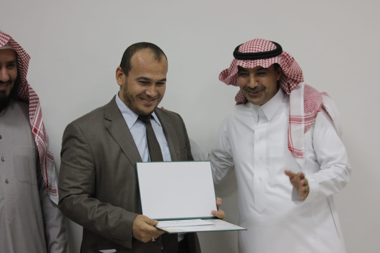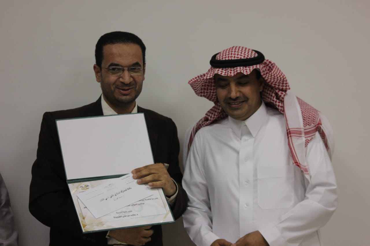 ثم جاء بعدها تكريم المشرفين على الطلاب من اعضاء هيئة التدريس والطلاب المشاركين على ما بذلوه من جهد كبير ومتميز .