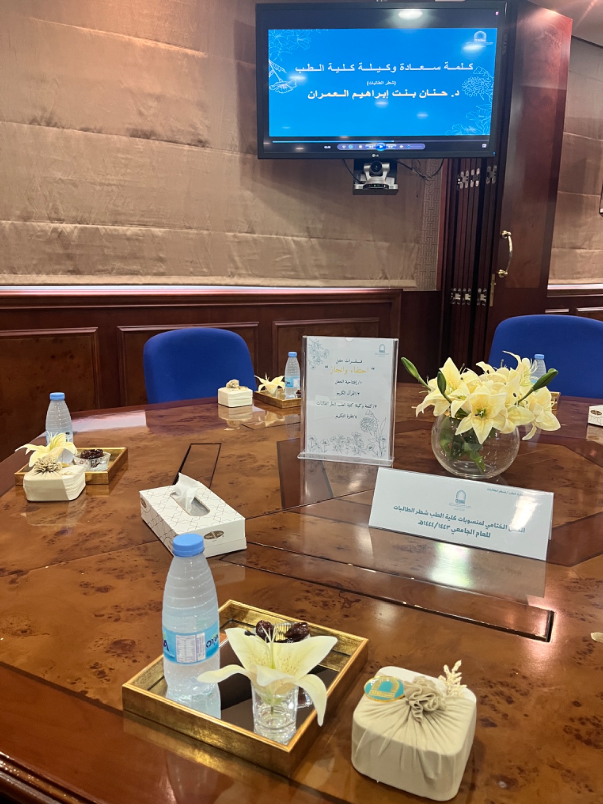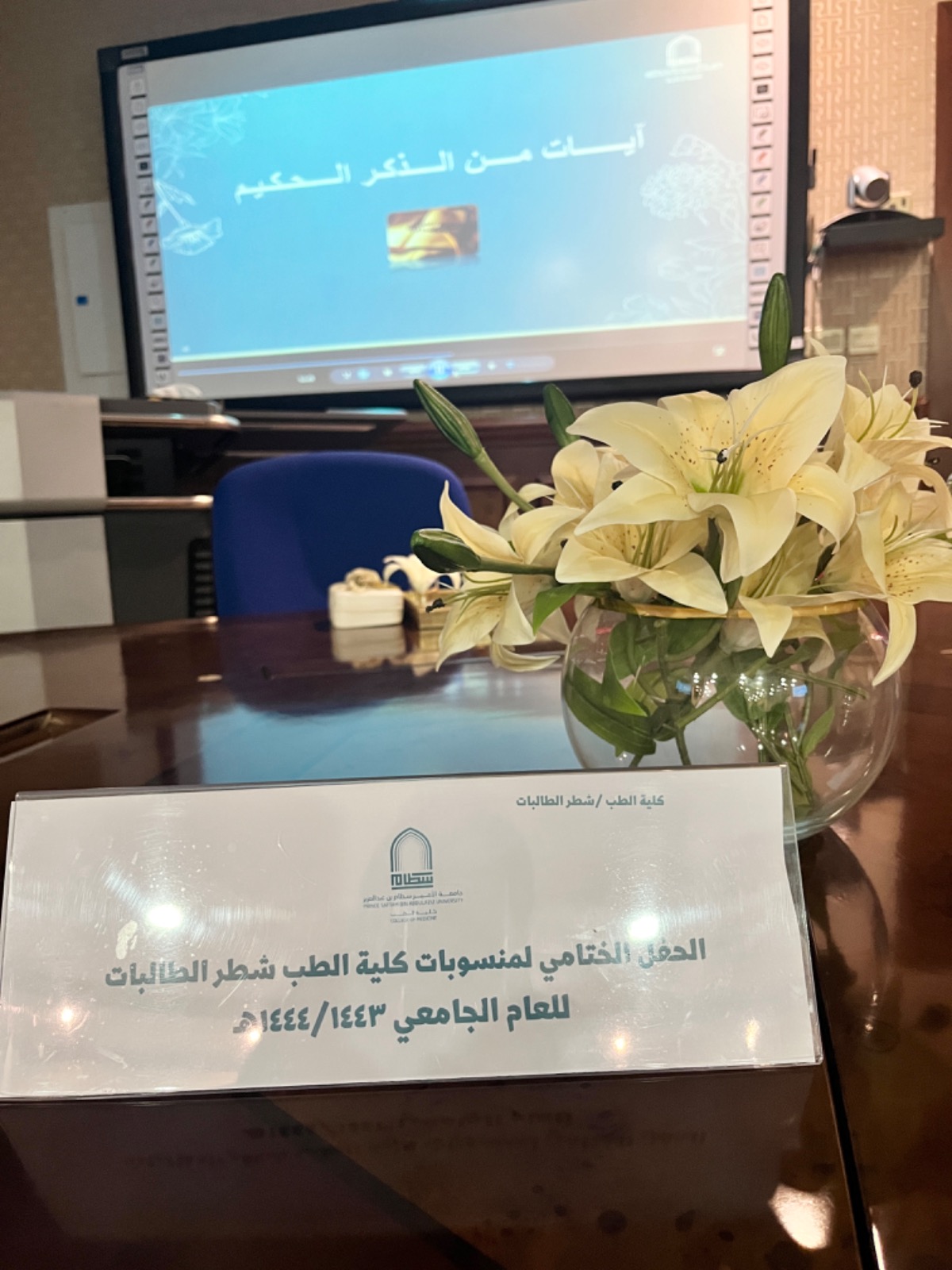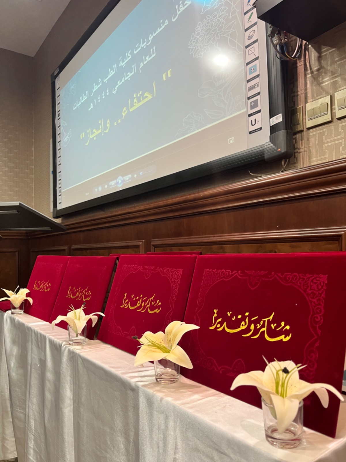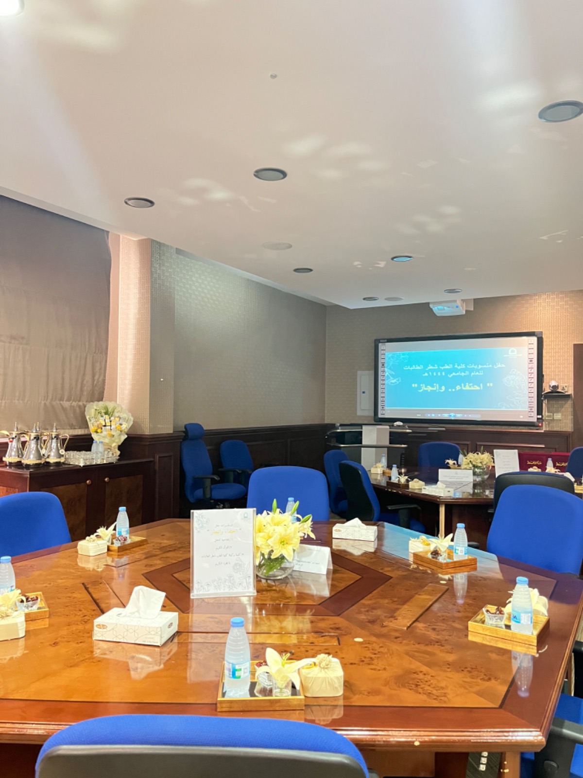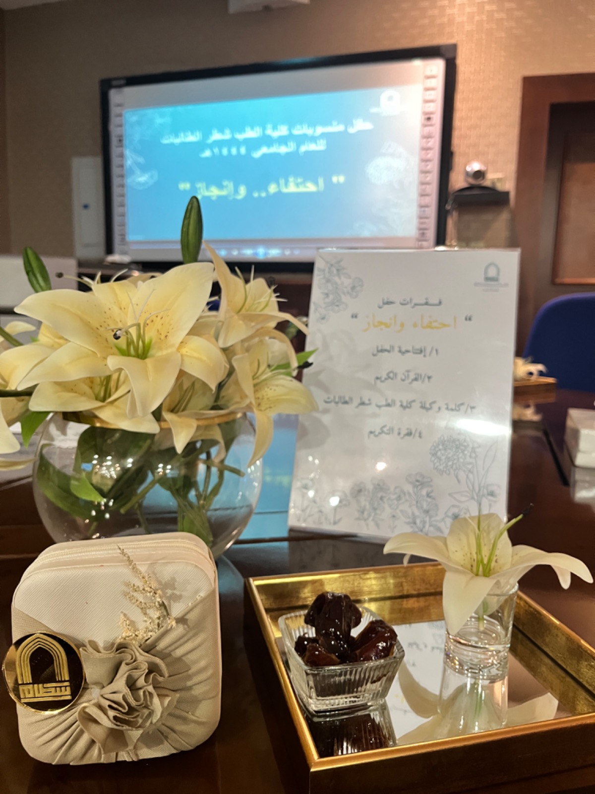 تحت شرف سعادة وكيلة كلية الطب د. حنان بنت إبراهيم العمران نظمت إدارة كلية الطب شطر الطالبات حفل تكريم منسوبات كلية الطب من أعضاء هيئة التدريس والإداريات في يوم الأربعاء الموافق :28صفر 1445هـ