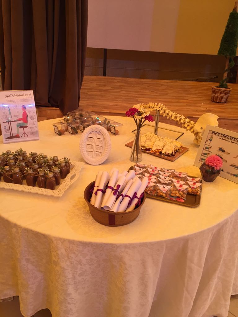 ثم تم تقديم نصائح للوقاية من آلم الظهر وطرق تخفيف الآلم عرضته الطالبة هيلة الشميمري وبعدها شرحت الطالبة بيان اليحيى الطرق الرئيسية لعلاج أسباب أسفل الظهر كالعناية المنزلية والعلاج الطبي والفيزيائي