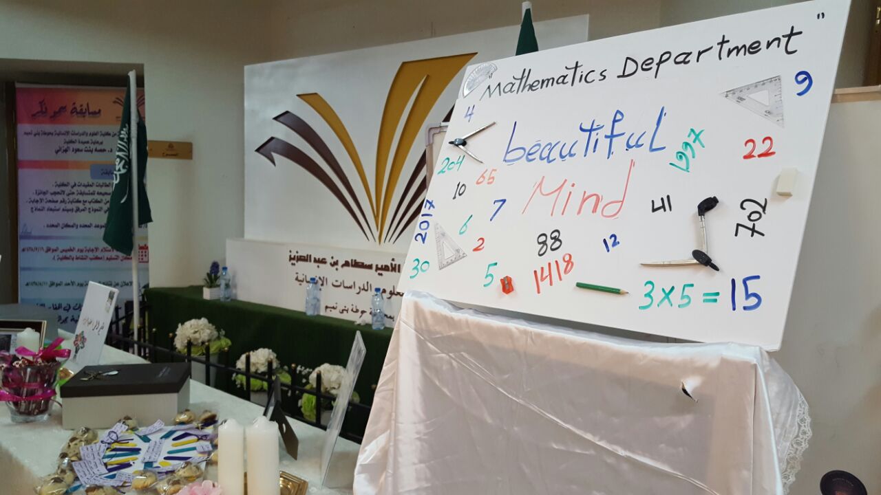 قدّم قسم الرياضيات بكلية العلوم والدراسات الإنسانية بحوطة بني تميم وذلك يوم الأربعاء الموافق 15 /7 /1438هـ بإشراف د.أم السعد فعالية (العلوم المسلية) وهي عبارة عن أركان تم تقديم مسابقات رياضية وألعاب ذكاء وبعض التجارب العلمية الخفيفة وذلك بهدف ربط العلم بالترفية وإبراز الجانب المسلي لبعض العلوم. هذا وقد لاقى البرنامج تفاعل كبير من الطالبات اللاتي استمتعن بألعاب الذكاء والمسابقات.