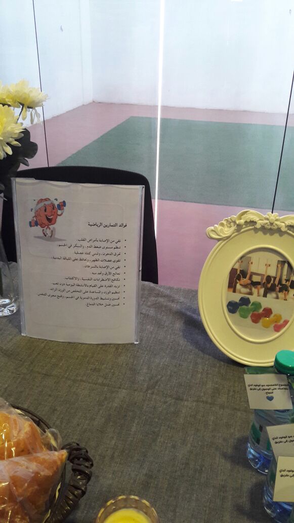 أقامت طالبات قسم العلاج الطبيعي في كلي العلوم الطبية التطبيقية وضمن الخدمات المقدمة في وحدة المجتمع بالكلية للتوعية والتثقيف الصحي فعالية بعنوان : النظام الغذائي وفوائد التمارين وذلك يوم الخميس الموافق 12/5/1439 هـ وبمقر نادي لبنى الرياضي النسائي وتحت إشراف الدكتورة / هميراء خانم واشتملت الفعاليات على شرح عن فوائد التمارين الرياضية قامت بتقديمه الطالبتين مشعاء الدوسري وسارة العمري تلاه تقديم للطالبة شموخ الجعيد عن فوائد ممارسة اليوغا ثم نصائح عامة من الطالبات شهد السميح وصباح سحاري وافنان بحران