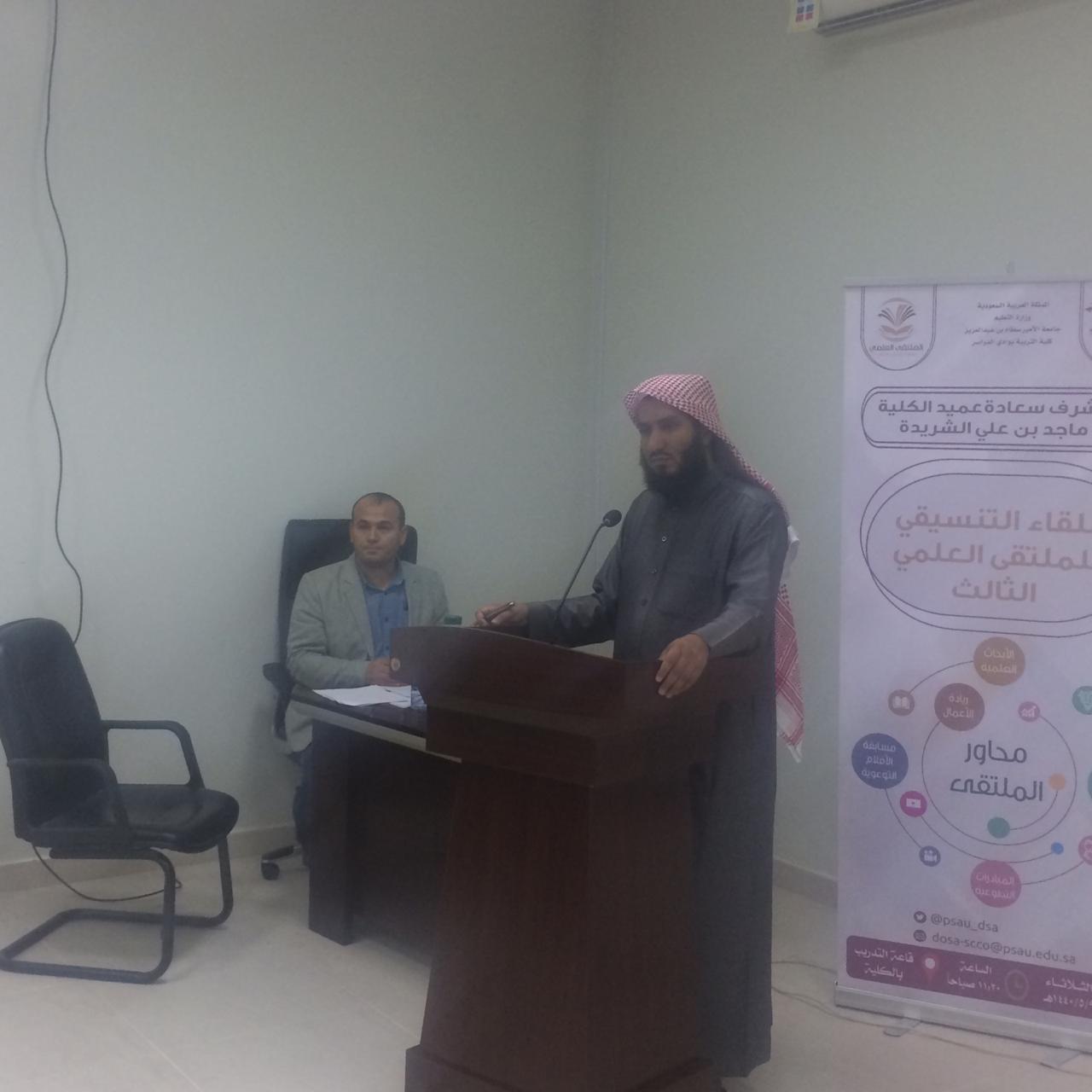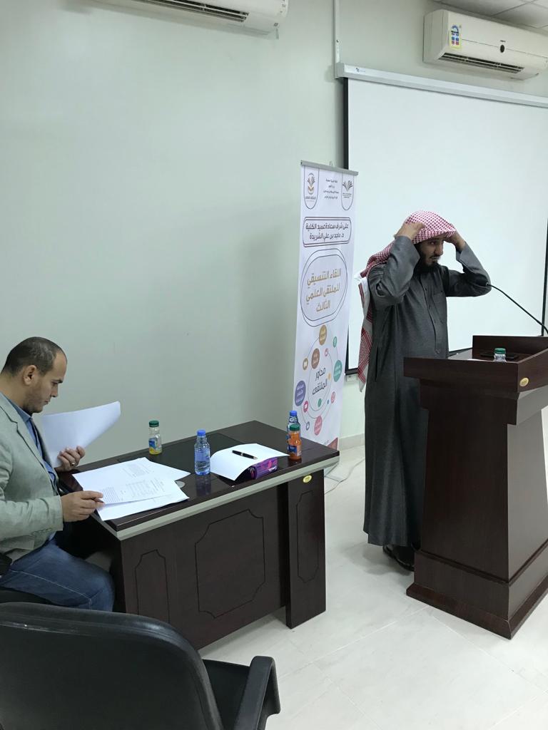 في إطار استعدادات كلية التربية بوادي الدواسر للملتقي العلمي الثالث أقامت الكلية فعالية بعنوان: تحكيم ومناقشة مبادرات الملتقي العلمي الثالث ، يوم الثلاثاء الموافق 1400/5/23 هـ فاعلية بعنوان التحكيم العلني لمبادرات الملتقي العلمي ومناقشتها ، أعدها وأشرف عليها كل من ، الدكتور/ فليان السبيعي منسق الكلية للملتقى العلمي الثالث ، والدكتور/ محمد سيد عبد اللطيف ، منسق وحدة البحث العلمي بالكلية >