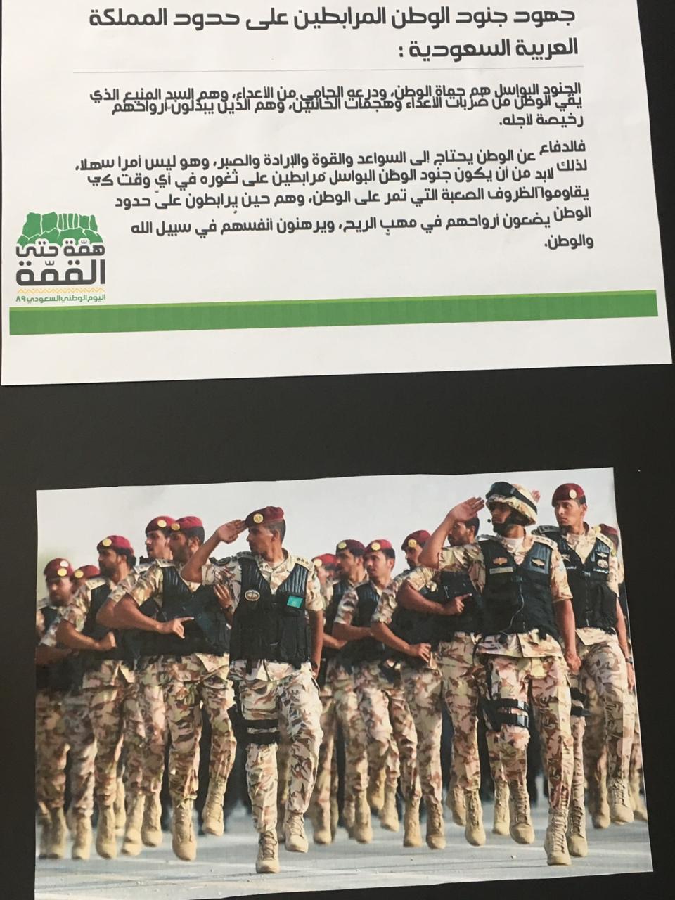 ازدانت عمادة السنة التحضيرية/ قسم الطالبات باللون الأخضر لتسطر في قصة عشقها للمملكة مظهراً احتفالياً قدمته بكل تواضع كبطاقة امتنانٍ وشكرٍ للوطن الحبيب، وبحضور عدد من وكيلات الكليات . حيث افتتحت الدكتورة أمل بنت صالح الشمراني وكيلة العمادة لشؤون الطالبات مراسم الحفل بالنشيد الوطني السعودي هوية كل محب لوطنه، تلاه آيات عطرة من الذكر ثم توالت برامج الاحتفال الذي أعدته وحدة الأنشطة الطلابية بإشراف الأستاذة سارة الدوسري . وابتدأ بكلمة من وكيلة العمادة الدكتورة الشمراني تلتها قصيدة وطنية بعنوان "دام عزك ياوطن" تبعه عرض لفيديو من تصميم طالبات العمادة وأعقبه شيلة للعرض العسكري من تصميم طالبات العمادة ومسرحية باللغة الانجليزية. واختتم الحفل بافتتاح وكيلة العمادة أركان المعرض المقام ببهو مبنى (ج ) بتنظيم ومشاركة من مختلف وحدات وأقسام العمادة مسطرين لوحات الانتماء والحب بمختلف الصور والأشكال، تم خلالها عرض بعض من مشاركات الطالبات الفنية والإبداعية.