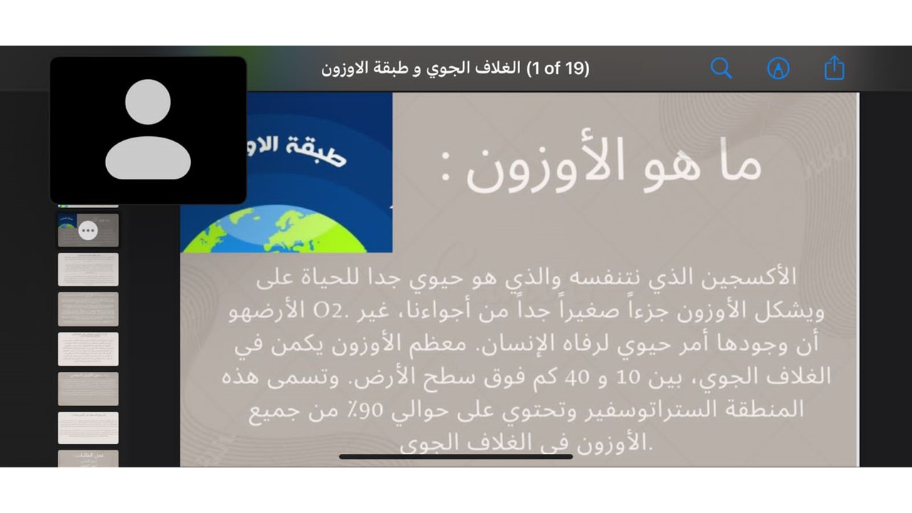 نظم نادي العلوم الأساسية -برنامج السنة التحضيرية – قسم الطالبات ، فعالية بعنوان الغلاف الجوي وطبقات الأوزون يوم الأحد الموافق 1444/10/24 هـ، بإشراف أ. زهراء علي خليفة وبحضور الطالبات والأستاذات، عرفت الطالبات الغلاف الجوي وطبقة الأوزون كما تحدثن عن تأثير الأوزون على الإنسان، وعلى الغطاء النباتي. وذكرن أضراره وكيفية السيطرة عليها وختمت الفعالية بعرض صور وفيديوهات للغلاف الجوي وتأثير طبقة الأوزون، وقد نال العرض الإشادة من الحاضرين