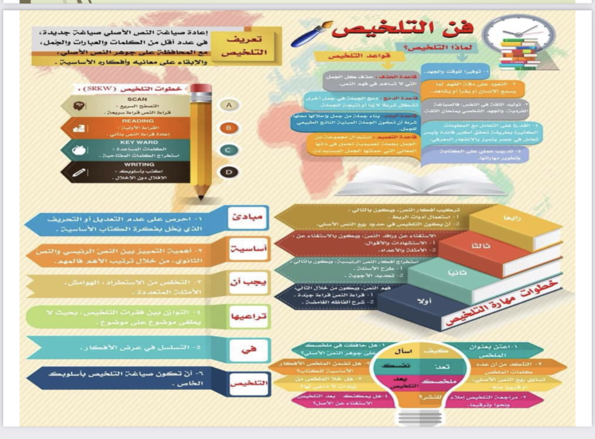 نظمت وحدة الأندية الطلابية متمثلة في نادى القراءة بقسم اللغة العربية فعالية بعنوان "فن التلخيص " وذلك يوم الخميس الموافق 17/2/2022 وكان من أهم أهداف الورشة كيفية عمل الملخصات للكتب الدراسية والتعليمية ،كيفية تلخيص القصص ، تعريف مهارة التلخيص