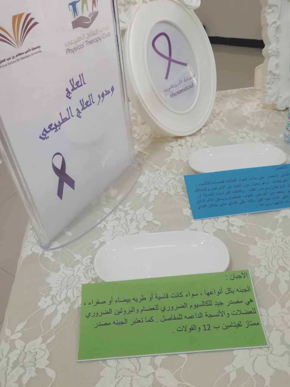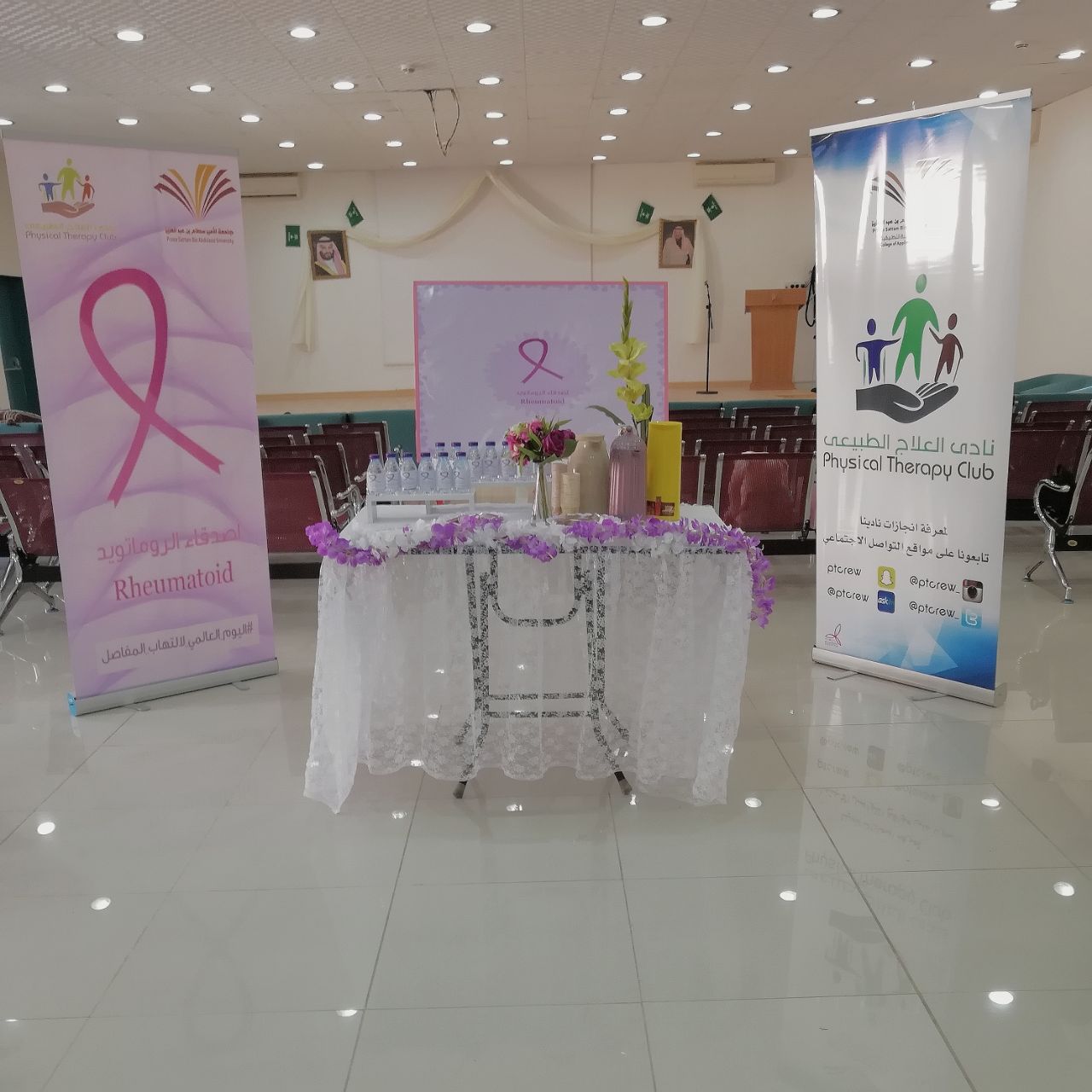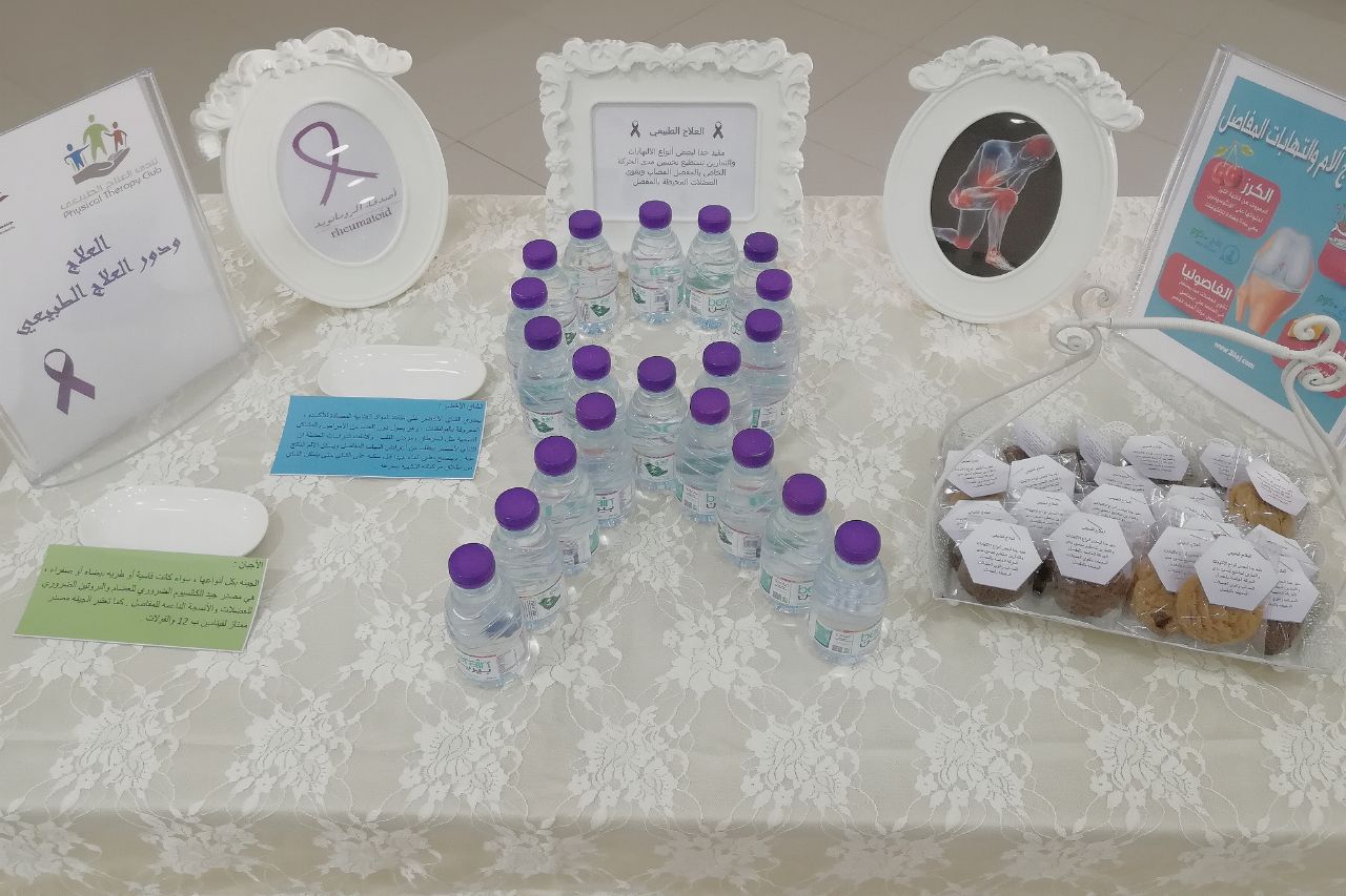 أقام نادي العلاج الطبيعي بكلية العلوم الطبية التطبيقية – أقسام الطالبات – بإشراف الدكتورة نادية لطفي رضوان فعالية بعنوان (مفاصل أقوى لخطوات أسهل) وذلك يوم الأربعاء 21| 1| 1439هـ تزامناً مع اليوم العالمي لالتهاب المفاصل .