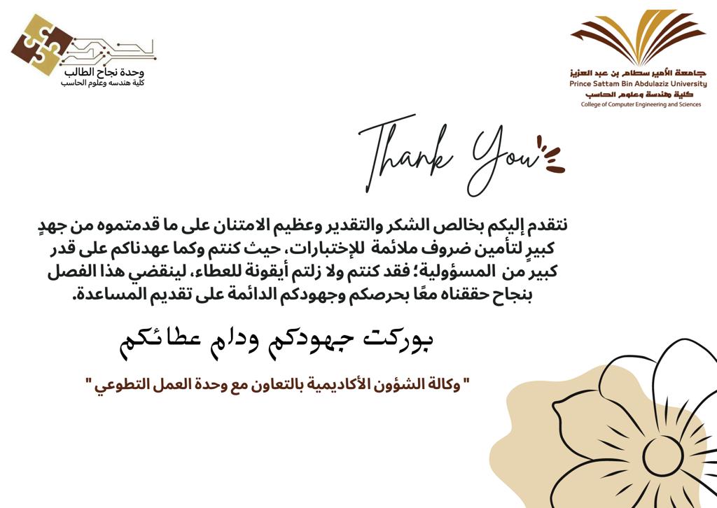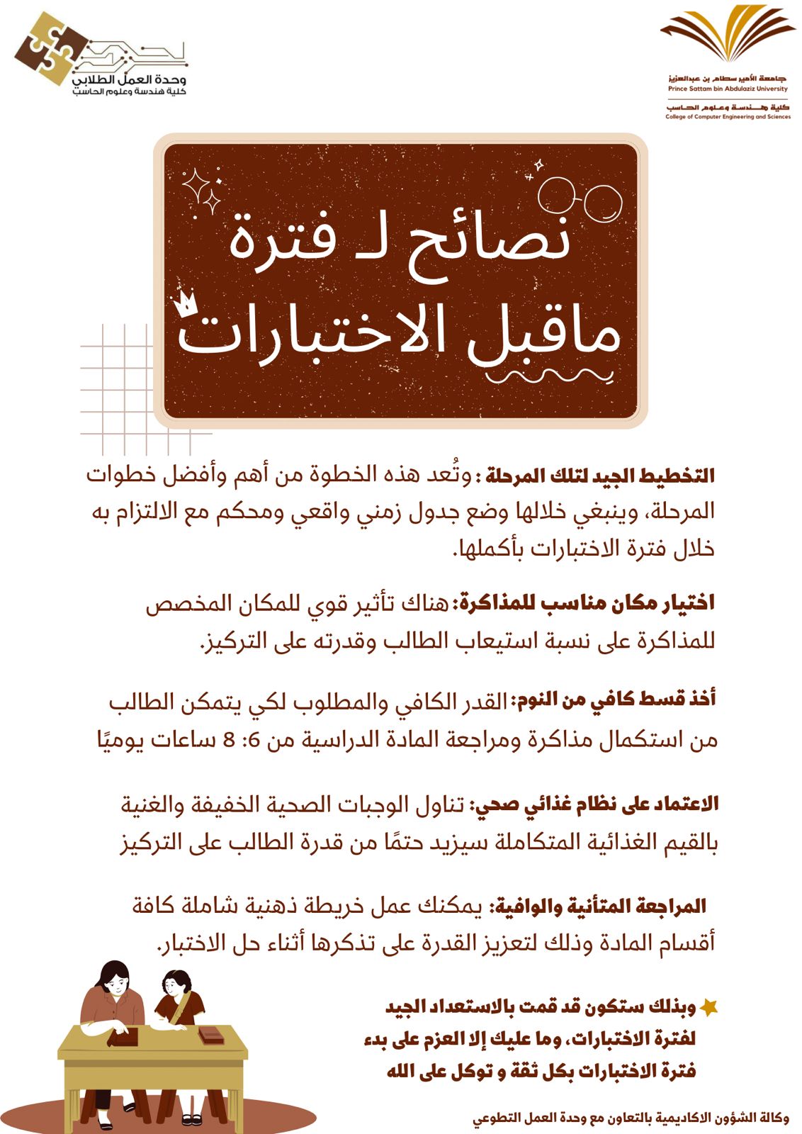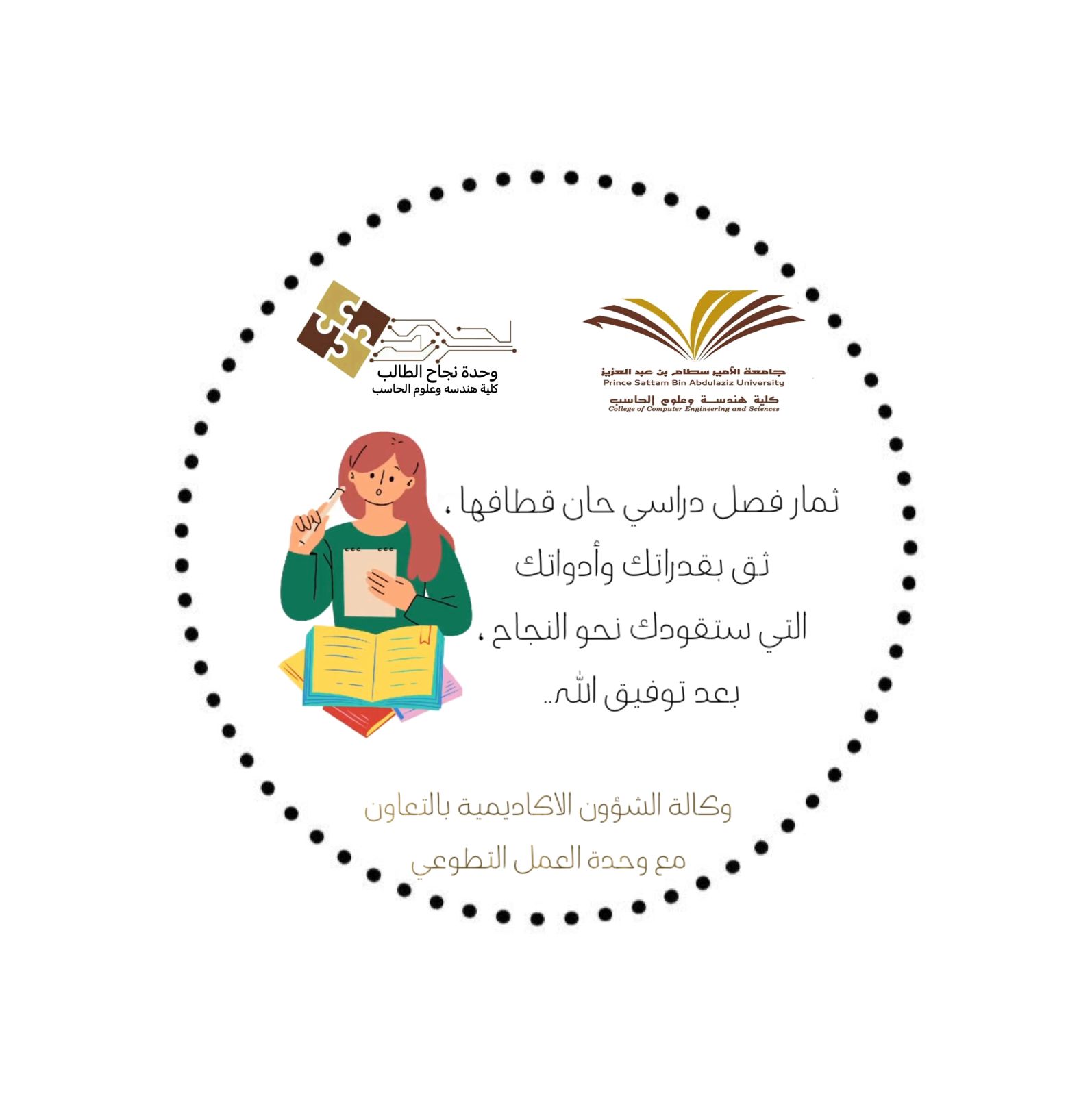 نظمت وحدة العمل التطوعي التابعة لوحدة نجاح الطالب بكلية هندسة وعلوم الحاسب شطر الطالبات فعالية بعنوان (ملصقات للاختبارات النهائية).