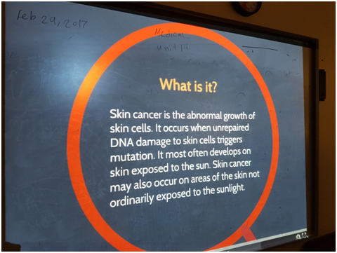 أقام نادي العلوم الأساسية بعمادة السنة التحضيرية -شطر الطالبات- فعالية بعنوان "سرطان الجلد" بإشراف وتنسيق الأستاذة إشراق أبو صيني حيث حضر الفعالية العديد من طالبات ومنسوبات العمادة.