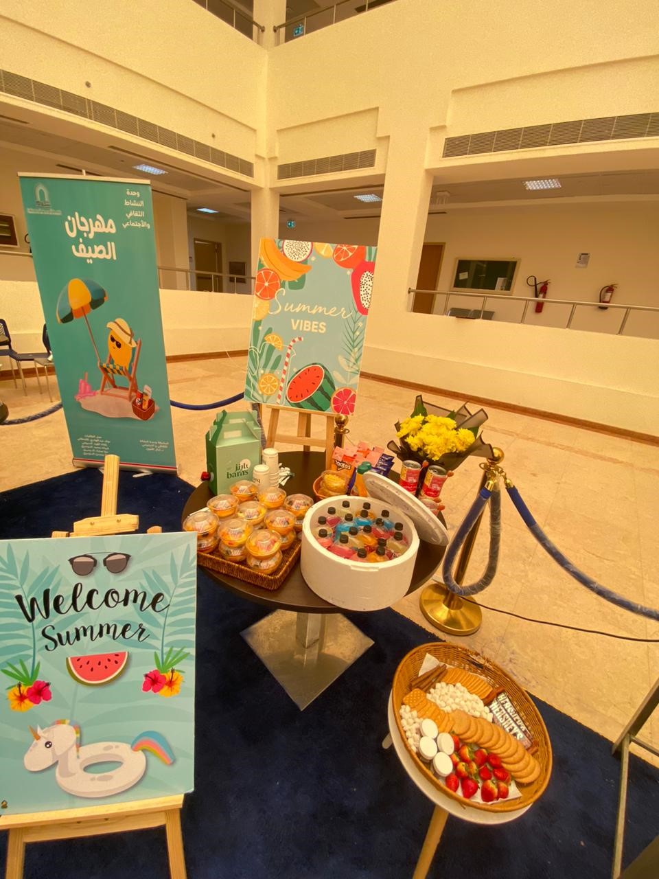 حيث تهدف الفعالية إلى منح الطالبات ومنسوبات الكلية من موظفات وعضوات هيئة التدريس يوم ترفيهي لما لذلك من كبير الأثر بجعل البيئة التعليمية غنية وجاذبة للطالبات حيث احتوت الفعالية العديد من الأركان التي مثلت منتجعا صيفيا كامل التفاصيل.