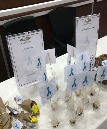 ضمن الخدمات المقدمة من وحدة خدمة المجتمع بكلية العلوم الطبية التطبيقية اقمن طالبات الكلية قسم الأشعة فعالية بعنوان (سرطان عنق الرحم) في مستوصف التعاون الطبي رقم 1 يوم الأربعاء الموافق 12/7/1439هـ وذلك للتوعية والثقيف الصحي للمجتمع