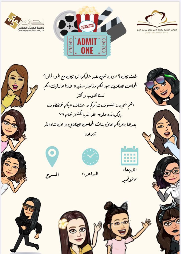 فعالية ترفيهية يوم الأربعاء الموافق 16/03/1441هـ في تمام الساعة 11 ظهراً في مسرح الكلية والتي تهدف