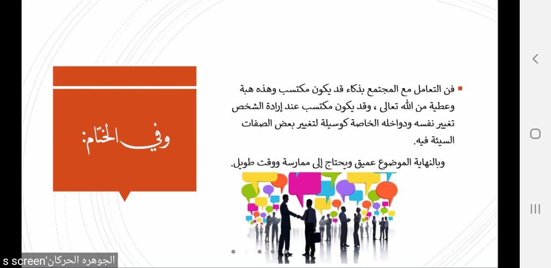 فن التعامل مع المجتمع هو من أهم المهارات الضرورية التي يجب على الإنسان إكتسابها ليصبح شخص ناجح وله مقدرة على إدارة المواقف, حيث يحرص الأشخاص الناجحون على تعلمها وإتقانها وتطبيقها في حياتهم, فالإنسان يحتاج إلى مهارة الذكاء الاجتماعي حتى يتمكن من مواصلة نجاحه وعلاقته مع الآخرين، والمقدرة على فهم مشاعر ومزاجية الآخرين والتعاطف معهم والتعامل معهم بذكاء وحكمه. ولذلك أقام نادي عون التطوعي بعمادة السنة التحضيرية -قسم الطالبات فعاليه بعنوان (فن التعامل مع المجتمع بذكاء) وذلك يوم الخميس الموافق 19 / 3 /1442 هـ، من خلال منصة برنامج zoom. حيث كان اللقاء يتضمن مقدمة تعريفية بفن التعامل مع المجتمع بذكاء ومناقشة الفرق بين التعامل بذكاء والتعامل بعاطفه,حيث لاقت الفعالية رضا واستحسان الحضور من منسوبات وطالبات العمادة.