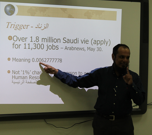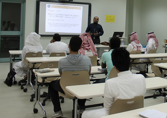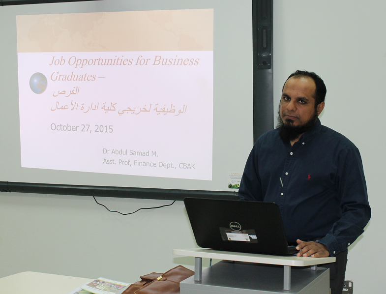 أقامت كلية إدارة الأعمال محاضرة تثقيفية بعنوان: (فرص العمل المتاحة لخريجي كليات إدارة الأعمال) قدمها الدكتور عبد الصمد محمد الأستاذ المساعد بقسم المالية بالكلية؛ حيث تناولت المحاضرة بيانًا بمحالات العمل المتاحة والمتجددة لخريجي تخصصات الكلية سواء التقليدية أو المبتكرة لتخصصات الكلية من المحاسبة، والمالية، ونظم المعلومات الإدارية، وإدارة الموارد البشرية، والإدارة والتسويق، مرورا بمساراتها مع بيان حجم الحاجة إلى هذه التخصصات وبشكل مبتكر يتواكب مع العصر الرقمي الحالي والتطور الاقتصادي المبني على المعرفة مع نصيحة المحاضر للطلاب بأهمية التطوير ومواكبة أحدث العلوم لضمان الحضور وإثبات الذات في ظل المنافسة التقنية . كما تم بنهاية المحاضرة السحب على جوائز تشجيعية للطلاب الحضور .
