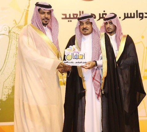 حيث تناوب كلٌ من الشاعرين الأستاذ / راجس بن مبارك الخضاري ، محاضر بكلية الآداب والعلوم ومساعد المشرف على الأنشطة الطلابية بالوكالة والطالب / تركي بن مران القويد -كلية الآداب والعلوم- في إلقاء قصيدتين نالتا استحسان الحضور ، ثم شاهد الجميع الأوبريت الوطني ” الغالية ” من أداء فريق أماسي شبابية الإنشادي التابع لوكالة الجامعة للفروع بالمحافظة. وكرّمت بعد ذلك الشركات والمؤسسات الداعمة ، تلاه تقديم هدية تذكارية من الأهالي لمحافظ وادي الدواسر بهذه المناسبة السعيدة .