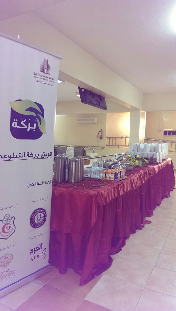 في صباح يوم الاربعاء الموافق 4/2/1436هـ انطلق فريق بركة التطوعي من كلية العلوم الطبية التطبيقية - أقسام الطالبات - الى مدينة الرياض في زيارة لدار المسنات حيث اقيم برنامج ترفيهي للمقيمات اشتمل على عدة فقرات ( القصيد - مسابقات - اكلات شعبية - اشغال يدوية ) ورحب المقيمات بعضوات الفريق بحرارة , وشكرت مديرة الدار الاستاذة / جواهر لغشيان الطالبات ودعتهم لعضوية صديقات الدار