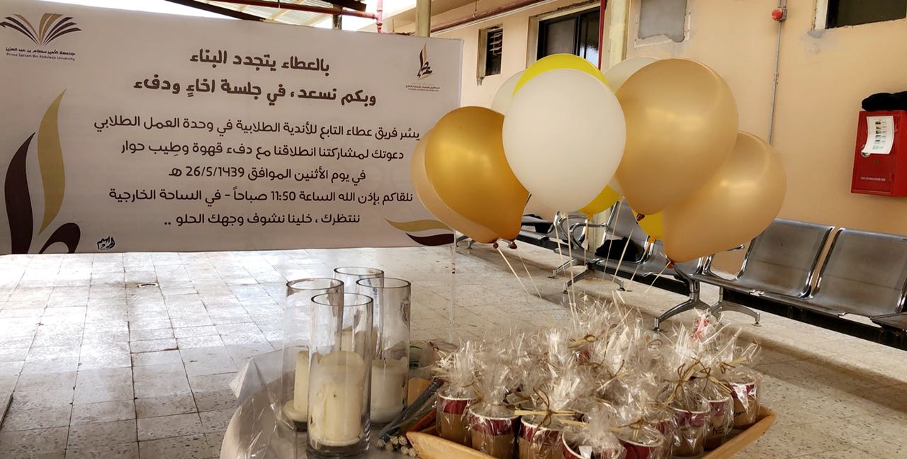 انطلق فريق (عطاء ) ضمن الأندية الطلابية بوحدة العمل الطلابي بكلية العلوم والدراسات الإنسانية بالأفلاج " شطر الطالبات"