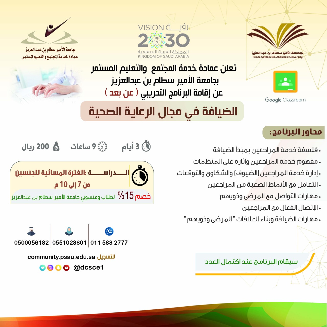 التسجيل المباشر : https://community.psau.edu.sa/ar/node/854/register