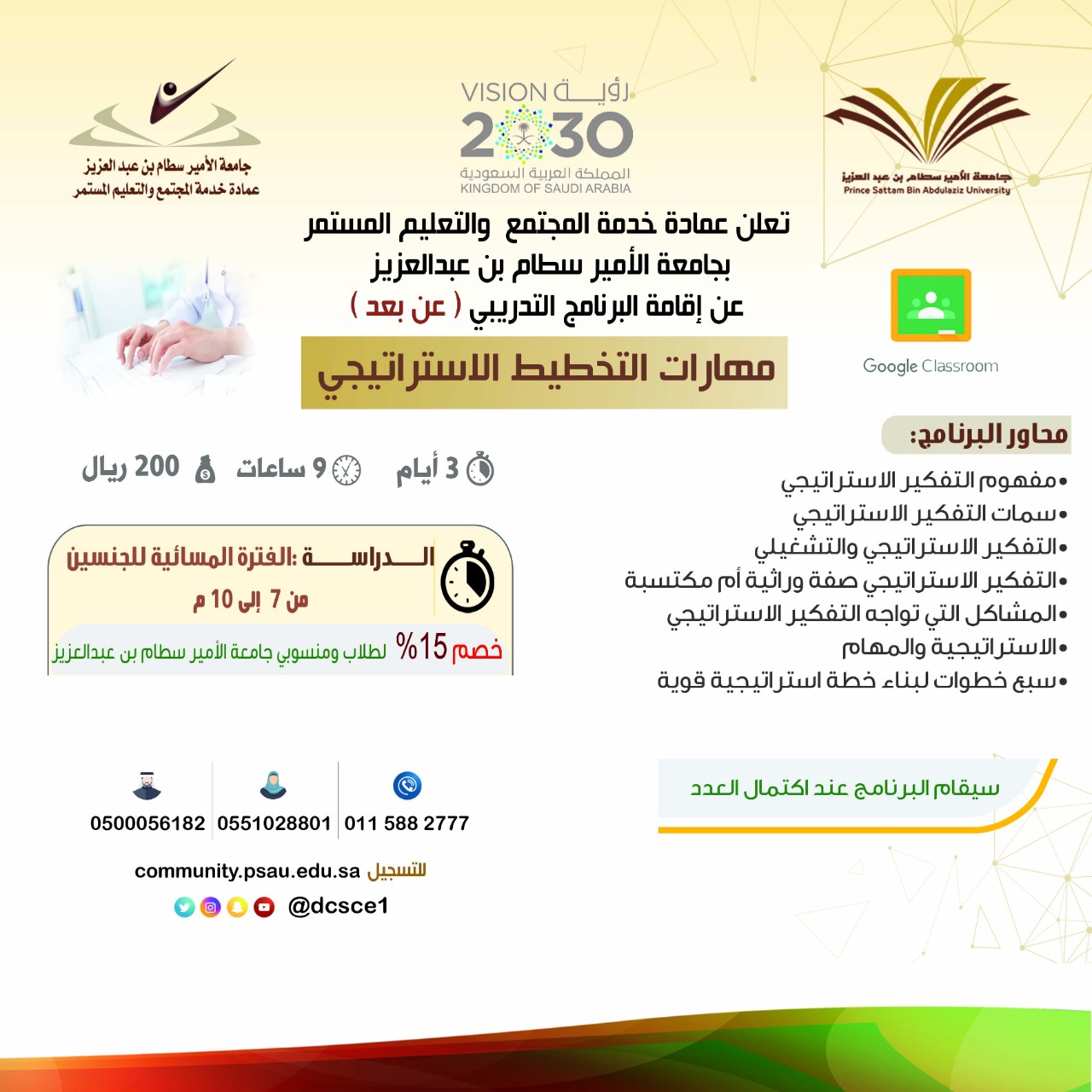 التسجيل المباشر : https://community.psau.edu.sa/ar/node/850/register